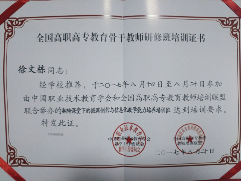 優(yōu)質(zhì)校建設(shè)之高校教師教學(xué)能力、信息技術(shù)與專業(yè)素養(yǎng)提升高級(jí)培訓(xùn)班總結(jié)及證書——徐文棟
