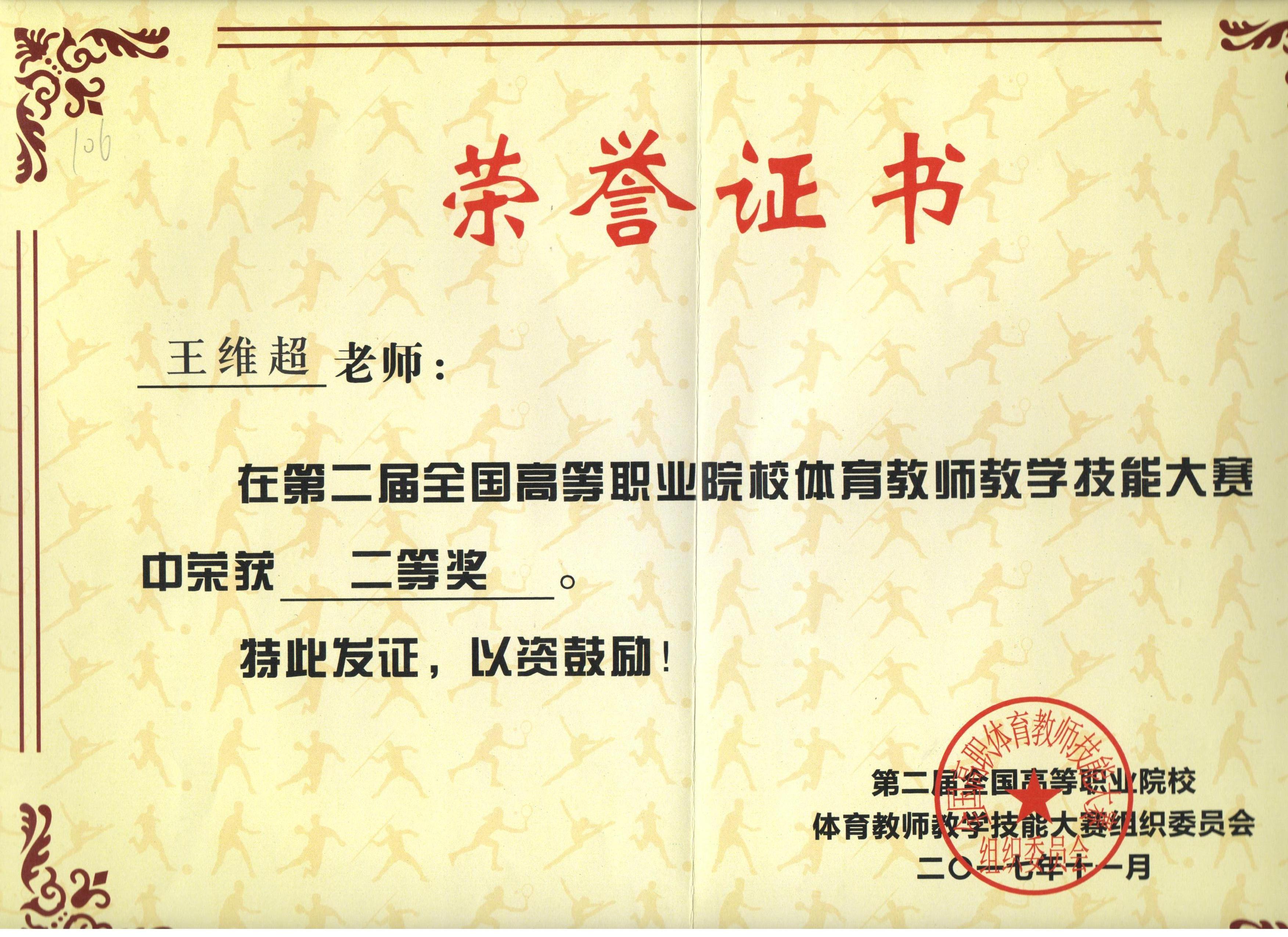 人文藝術(shù)教育系王維超老師在第二屆全國高等職業(yè)院校體育教師技能大賽上獲獎(jiǎng)