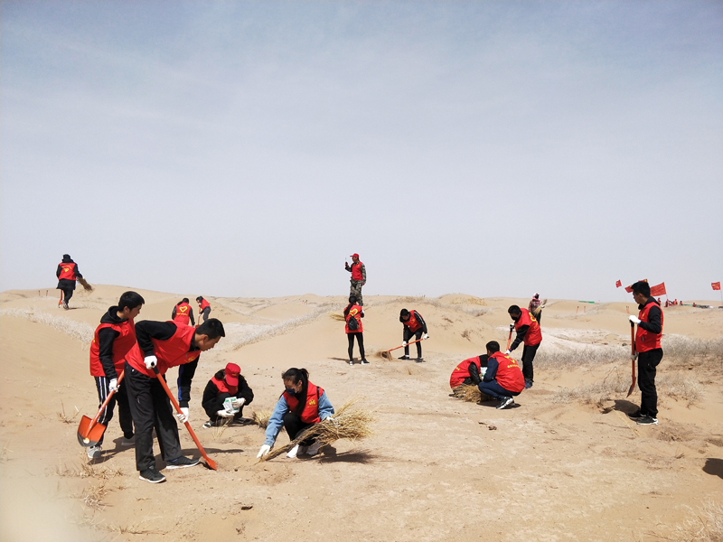 啟動儀式結(jié)束后,學院志愿者和來自社會各界的400多名志愿者在技術(shù)人員的指導下,嚴格按照栽植梭梭“挖深坑、樹栽中、三埋兩踩一提根”的技術(shù)操作要求,通力協(xié)作,密切配合,認真做好挖坑、放梭梭、施肥、埋沙等各個環(huán)節(jié)的操作,有效保障了梭梭的成活率。經(jīng)過不懈努力,共栽植梭梭5萬余株,為拯救民勤綠洲貢獻了自己的青春力量。