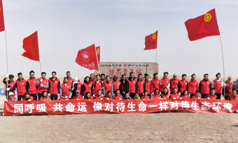 為傳播綠色發(fā)展理念,引導青年學生牢固樹立“綠水青山就是金山銀山”的理念,積極投身植樹造林、美化環(huán)境、治沙壓沙等生態(tài)文明建設(shè)的生動實踐,4月14日,團省委在民勤縣昌寧鎮(zhèn)四方墩志愿者生態(tài)林基地舉辦 “構(gòu)筑生態(tài)屏障·助力脫貧攻堅”暨2018年“甘肅青年林”春季植樹活動啟動儀式。學院團委組織53名志愿者參加活動啟動儀式和義務(wù)植樹壓沙活動。