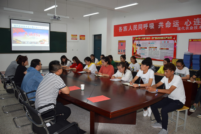 為認(rèn)真貫徹落實《學(xué)院第15個民族團結(jié)進步宣傳月活動實施方案》,6月12日,現(xiàn)代農(nóng)業(yè)技術(shù)系在行樹樓教學(xué)區(qū)309會議室開展民族團結(jié)月系列活動。系黨總支書記晏素珍、龔建軍、蔡飛老師及全系少數(shù)民族學(xué)生參加會議,會議由系輔導(dǎo)員蔡海老師主持。