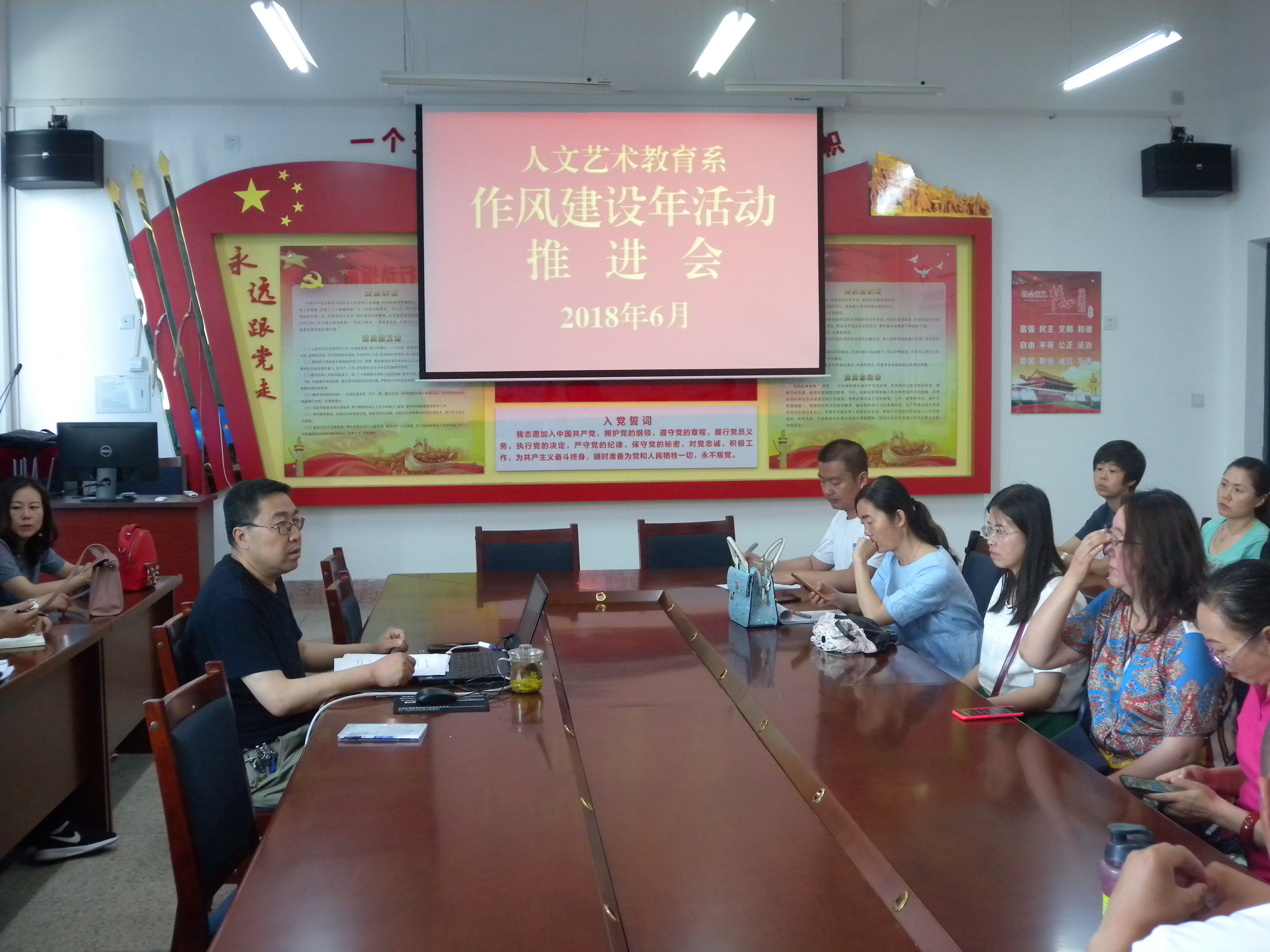人文藝術教育系于6月13日召開了人文藝術教育系“作風建設年”活動推進會。會議由系黨總支書記胡靜峰同志主持,全體教職工參加了會議。