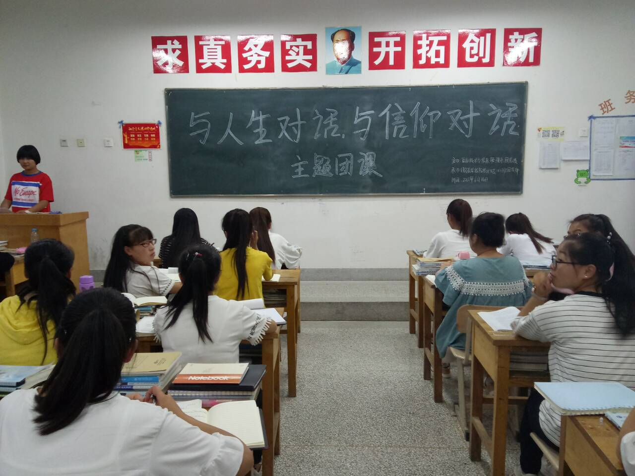 為了引導(dǎo)青年學(xué)生提高思想道德修養(yǎng),找準(zhǔn)人生方向和成長道路,培育和踐行社會(huì)主義核心價(jià)值觀,醫(yī)學(xué)技術(shù)與信息管理系于2018年6月14日在各班教室進(jìn)行了“與人生對(duì)話與信仰對(duì)話”的主題團(tuán)課,旨在提高同學(xué)們的政治素養(yǎng),進(jìn)一步濃郁班級(jí)文化氛圍、激發(fā)同學(xué)們讀書求知的熱情。