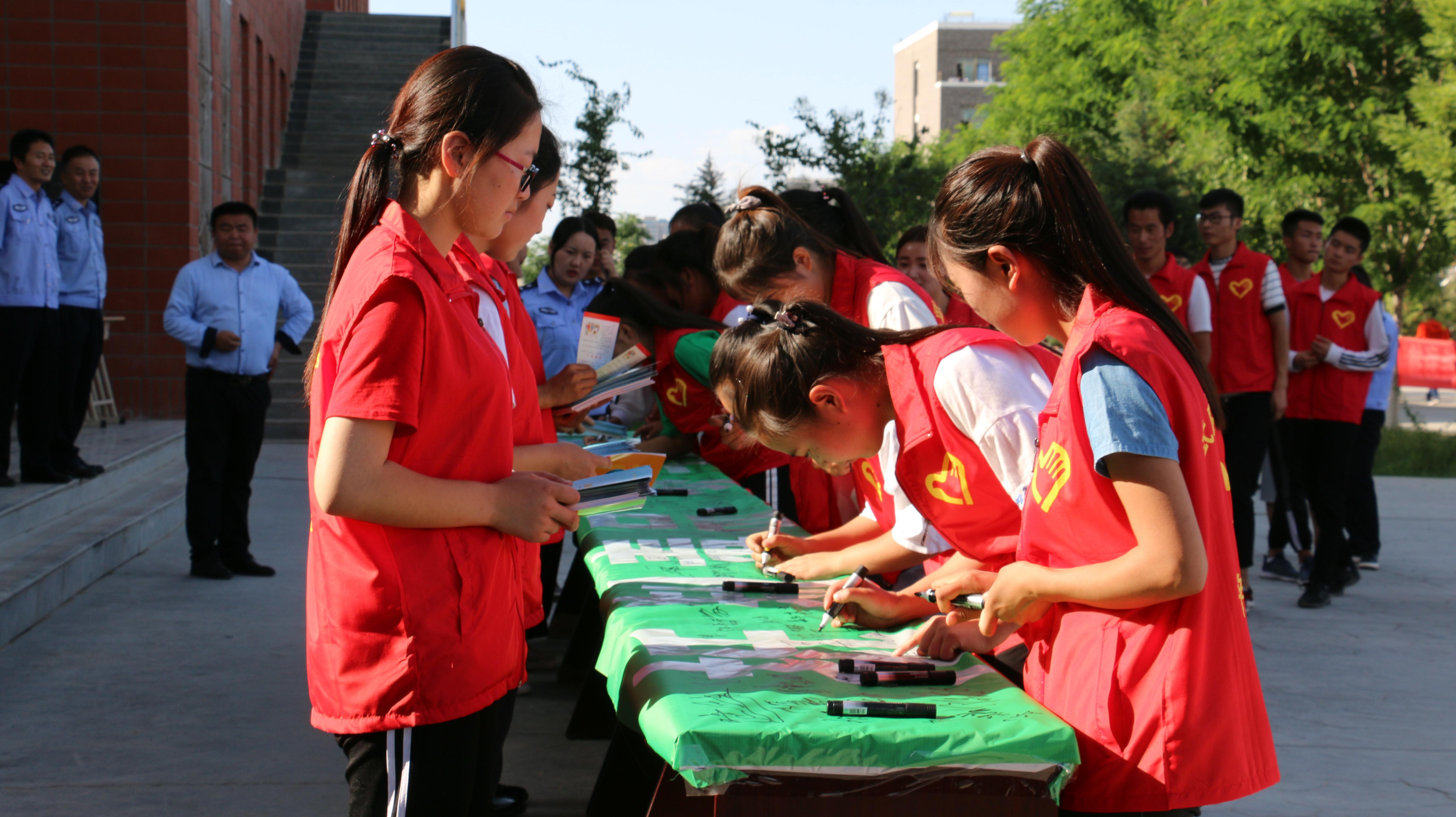 宣傳活動(dòng)以“健康人生.綠色無(wú)毒”為主題,通過(guò)禁毒志愿者代表宣讀禁毒倡議書(shū),不涉毒承諾簽名活動(dòng)、發(fā)放宣傳資料、展示禁毒宣傳展板等形式,讓廣大青年學(xué)生更深刻地認(rèn)識(shí)到“毒品”這一社會(huì)公害給個(gè)人、家庭、社會(huì)帶來(lái)的危害,旨在提高廣大青年學(xué)生識(shí)毒、防毒、拒毒意識(shí)和參與禁毒人民戰(zhàn)爭(zhēng)的積極性。