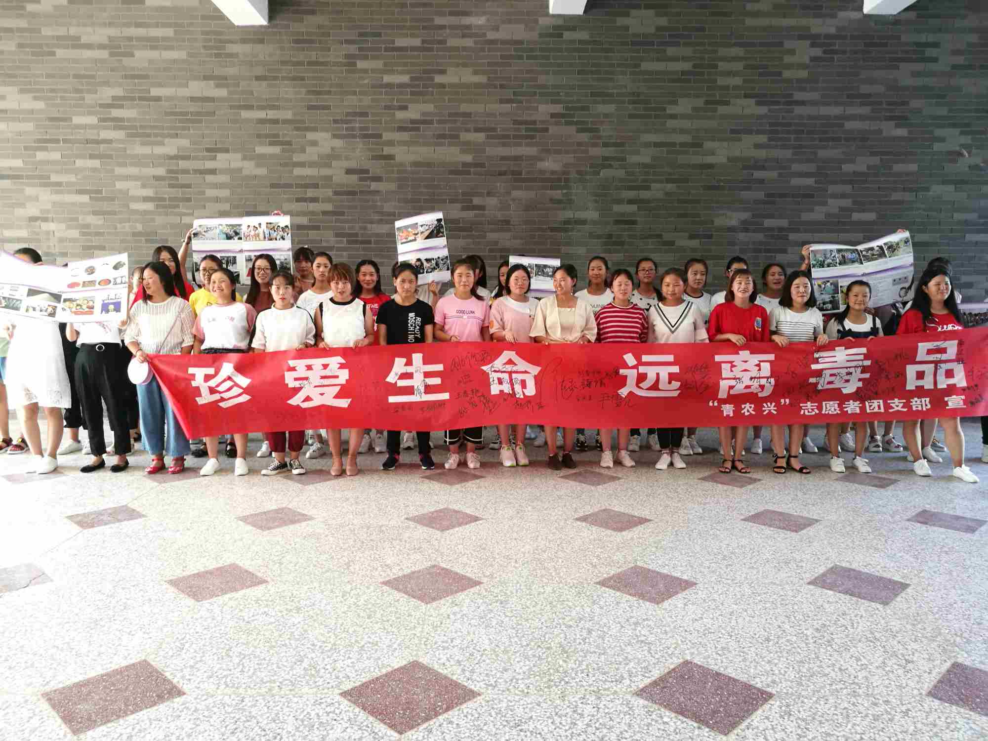 圖為我系“青農興”志愿者團支部開展“珍愛生命 遠離毒品”宣傳活動。
