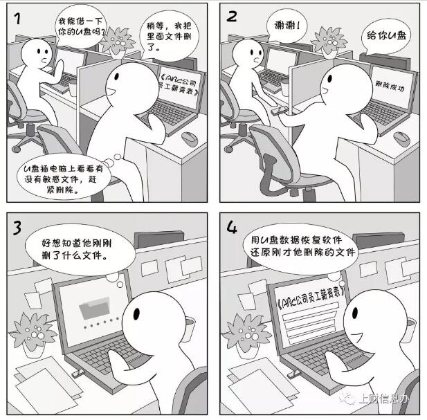 刪除電腦或U盤中的文件時(shí),如果僅點(diǎn)刪除按鈕,或快速格式化,其實(shí)并未真正從硬盤或U盤中刪除,利用數(shù)據(jù)恢復(fù)軟件可輕松恢復(fù)出來,清空回收站同樣可以恢復(fù)。