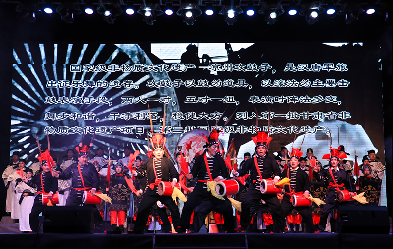 近年來,學(xué)院師生創(chuàng)作、改編了許多反映地方特色和校園生活主題的節(jié)目。其中晚會上由我院教師自編原創(chuàng)的大型吟誦舞臺劇《金戈鐵馬入夢涼州》邀請了國家級非物質(zhì)文化遺產(chǎn)涼州攻鼓子助力表演,結(jié)合戲曲、舞蹈、器樂等形式,全方位展示了涼州文化深厚的底蘊和鮮明的地域特色,涼州攻鼓子表演更是蕩氣回腸,讓現(xiàn)場師生充分領(lǐng)略了傳統(tǒng)文化的博大精深和獨特魅力。大學(xué)生藝術(shù)團主持隊自編自演的詩歌朗誦《青春報告》,結(jié)合當(dāng)代大學(xué)生青春夢想、歷史使命的創(chuàng)作和聲情并茂的演繹,體現(xiàn)了新青年對于理想與擔(dān)當(dāng)?shù)娜陆庾x。大學(xué)生藝術(shù)團曲藝隊自導(dǎo)改編的相聲《新生入學(xué)指南》,以詼諧幽默的形式講解了大一新生入學(xué)后的趣味生活,贏得了新同學(xué)們的共鳴和陣陣掌聲。