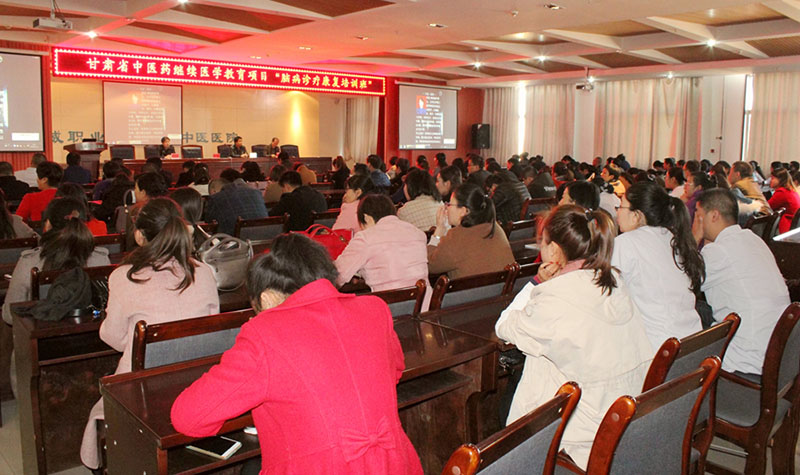 為提高醫(yī)務(wù)人員對(duì)于腦病(腦卒中)的診療和康復(fù)訓(xùn)練水平,推進(jìn)醫(yī)院腦卒中中心的籌備建設(shè),學(xué)院附屬醫(yī)院于11月11日上午,在內(nèi)科七樓會(huì)議室舉辦甘肅省中醫(yī)藥繼續(xù)醫(yī)學(xué)教育項(xiàng)目:腦病診療康復(fù)培訓(xùn)班。醫(yī)院副院長宗武山主持培訓(xùn)班開班儀式,副院長毛照海致辭歡迎蘭大二院2位神經(jīng)內(nèi)科專家講學(xué)指導(dǎo)工作。醫(yī)院各科室二百余名醫(yī)療骨干參加腦病診療康復(fù)培訓(xùn)班,聆聽學(xué)術(shù)報(bào)告。