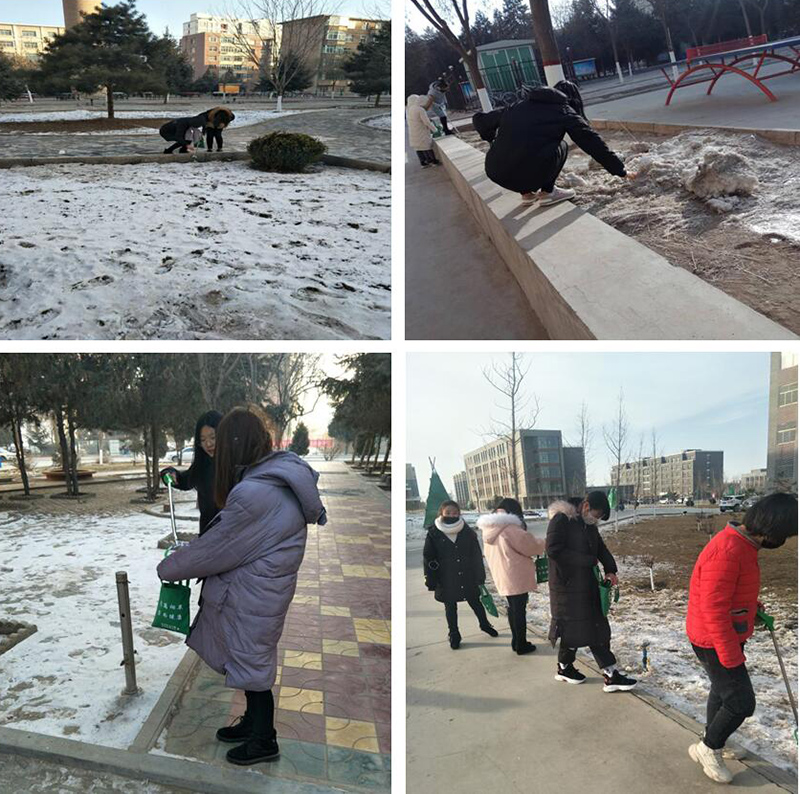 活動期間,由系輔導員齊斌文老師和班主任帶領同學們準備好工具準時在各區(qū)域集合,對校園內(nèi)煙頭、垃圾進行撿拾,為全院師生營造了良好的學習氛圍。
