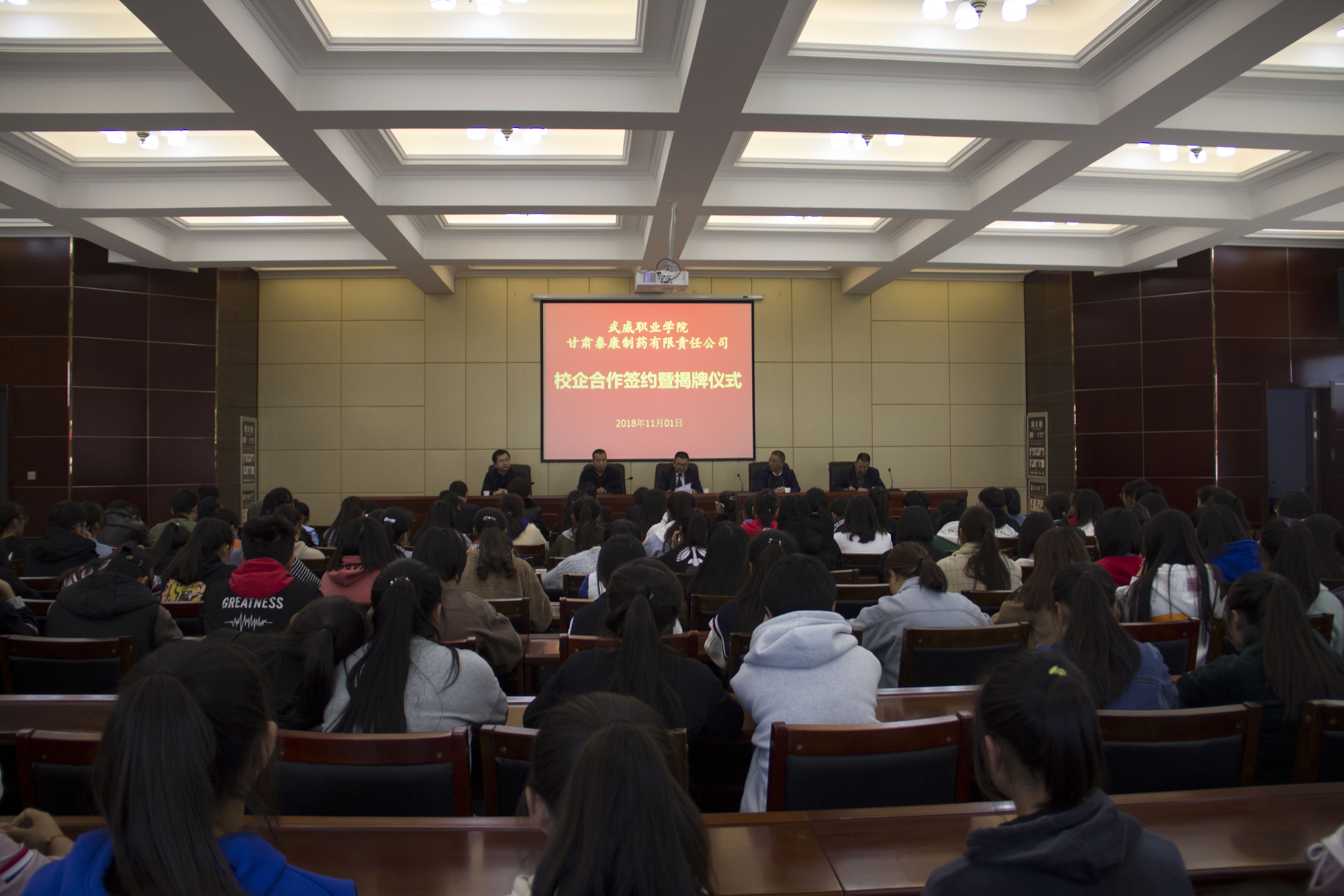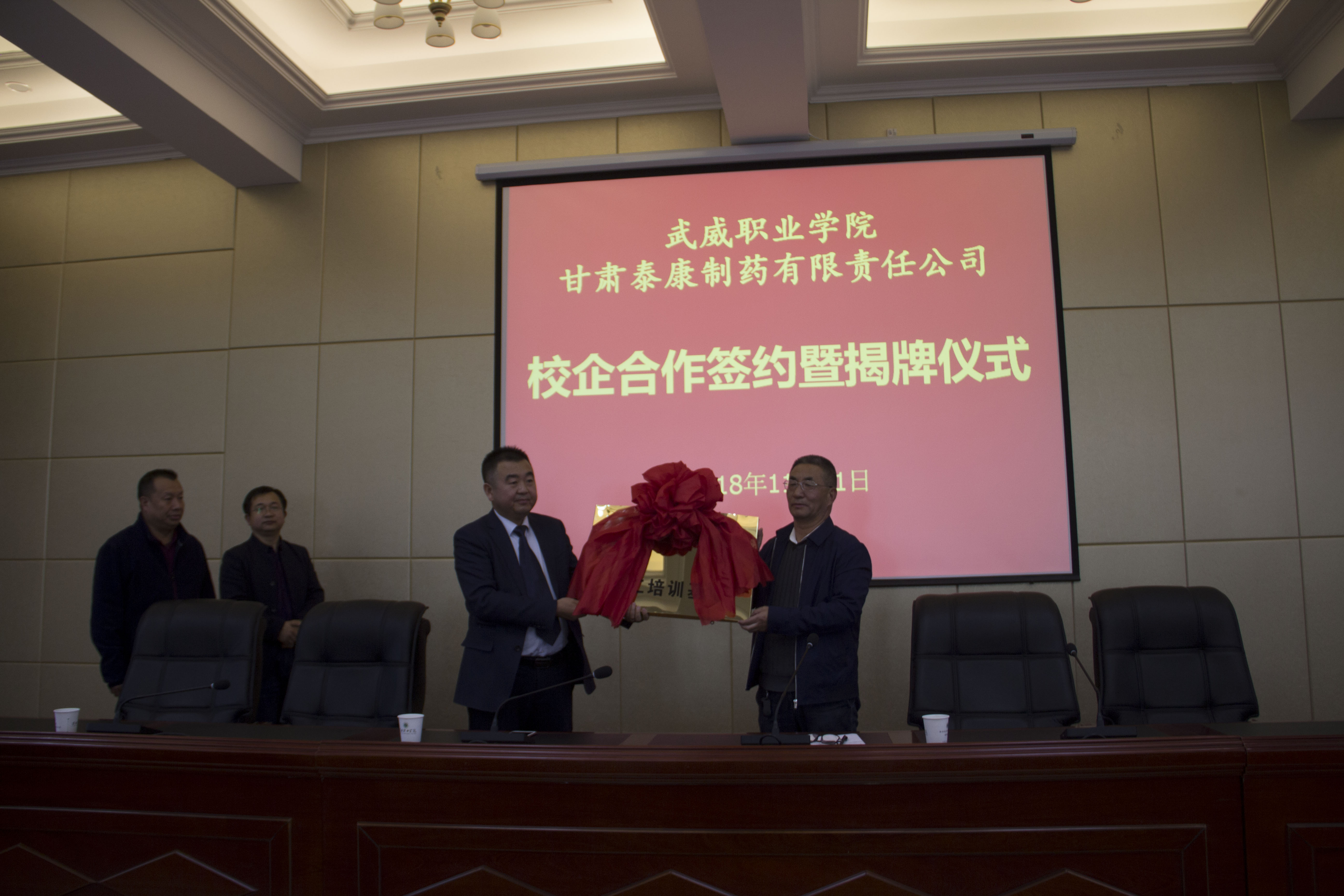 為提高人才培養(yǎng)質(zhì)量和辦學(xué)水平,加強(qiáng)校企協(xié)同育人機(jī)制建設(shè),11月1日下午,藥學(xué)系與甘肅泰康制藥有限責(zé)任公司校企合作共建“就業(yè)實(shí)習(xí)基地”簽約揭牌儀式在行樹樓北側(cè)會(huì)議室隆重舉行。甘肅泰康制藥有限責(zé)任公司投資方—北京久朝集團(tuán)產(chǎn)業(yè)中心總監(jiān)楊宏超、公司總工程師毛著鴻、財(cái)務(wù)總監(jiān)郝敏等企業(yè)領(lǐng)導(dǎo)出席本次儀式。學(xué)院教務(wù)處處長仲生仁、招生就業(yè)處處長蔡柱山、藥學(xué)系主任魏潤明、副主任楊建美、黨總支副書記單光年及藥學(xué)系160余名師生參加了此次簽約揭牌儀式。儀式由魏潤明主持。