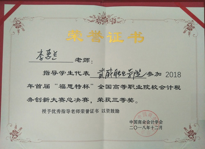 本次比賽得到學(xué)院領(lǐng)導(dǎo)、系領(lǐng)導(dǎo)的高度重視與大力支持。經(jīng)濟管理系專門成立了輔導(dǎo)小組,嚴(yán)格按照國賽要求進行實戰(zhàn)訓(xùn)練。近年來,經(jīng)濟管理系參加各級各類會計技能競賽,適時修訂會計人才培養(yǎng)方案,提升學(xué)生動手實踐能力,培養(yǎng)學(xué)生的職業(yè)核心和專業(yè)崗位能力。做到技能競賽與教學(xué)改革、人才培養(yǎng)相輔相成、相得益彰,使學(xué)生團隊合作能力、創(chuàng)新思維能力、職業(yè)能力不斷加強,實現(xiàn)了“以賽促教、以賽促學(xué)、以賽促改”的預(yù)期效果。經(jīng)濟管理系將以此為契機,不斷提高人才培養(yǎng)質(zhì)量,為學(xué)院優(yōu)質(zhì)院校建設(shè)增磚添瓦。