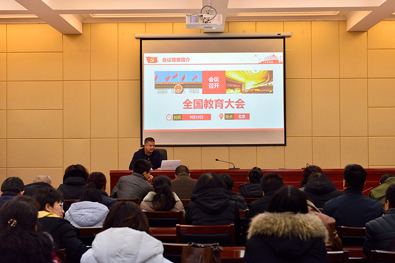 學(xué)工處處長(zhǎng)王守云主講。他以“學(xué)為人師 行為世范 爭(zhēng)做‘四有’老師”為題學(xué)習(xí)了全國(guó)教育大會(huì)召開的背景、重大意義以及習(xí)近平總書記關(guān)于教育的重要論述。宣講會(huì)指出,全國(guó)教育大會(huì)是黨中央在中國(guó)特色社會(huì)主義進(jìn)入新時(shí)代、全面建成小康社會(huì)進(jìn)入決勝階段召開的一次劃時(shí)代、歷史性會(huì)議,時(shí)機(jī)好、規(guī)格高、影響大,在我國(guó)教育發(fā)展史上具有重要里程碑意義;習(xí)近平總書記深刻總結(jié)了黨的十八大以來我國(guó)教育事業(yè)發(fā)展取得的顯著成就,對(duì)當(dāng)前和今后一個(gè)時(shí)期教育工作作出重大部署,為加快推進(jìn)教育現(xiàn)代化、建設(shè)教育強(qiáng)國(guó)、辦好人民滿意的教育指明了前進(jìn)方向、提供了根本遵循。