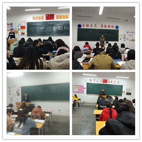為深入學(xué)習(xí)貫徹習(xí)近平新時代中國特色社會主義思想和黨的十九大精神,牢固樹立“四個意識”,進(jìn)一步維護(hù)憲法法律權(quán)威,強(qiáng)力推進(jìn)法治校園建設(shè),扎實做好校園憲法學(xué)習(xí)宣傳普及工作,營造尊法、學(xué)法、守法、用法的濃厚氛圍,在第五個國家憲法日來臨之際,藥學(xué)系召開會議安排部署了學(xué)習(xí)憲法各項活動,各班級也分別召開了“學(xué)習(xí)憲法”主題班會。