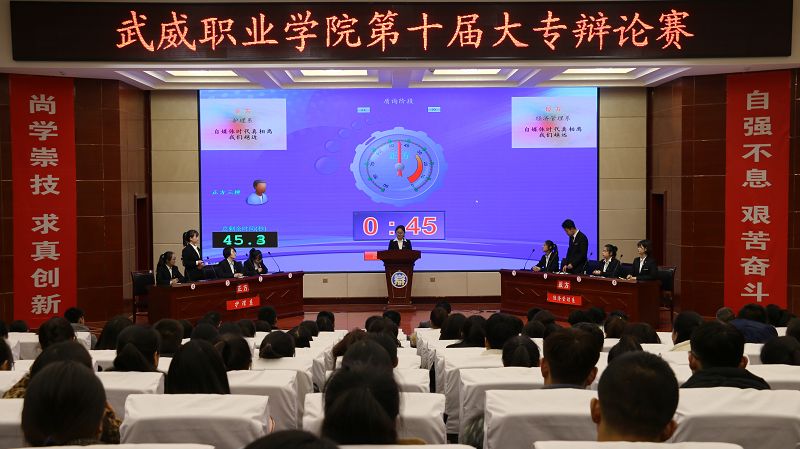 為深入學習貫徹落實習近平新時代中國特色社會主義思想和黨的十九大精神,拓展大學生思辨能力,培養(yǎng)學生的團隊合作精神,展現(xiàn)我院青年學生昂揚向上的青春風采和精神風貌,院團委舉辦了學院第十屆大專辯論賽。12月13日晚,辯論賽決賽在大學生活動中心菁英廳舉行,辦公室主任張開禮、宣傳統(tǒng)戰(zhàn)部部長王繼林、學生工作處處長王守云、護理系黨總支書記張建輝、經(jīng)濟管理系主任張伯成出席比賽,工會主席金玉龍、創(chuàng)新創(chuàng)業(yè)中心主任胡建宏、教務處副處長張世亮、招生就業(yè)處副處長董鵬、團委負責人高鵬堂擔任比賽評委,200多名辯論愛好者觀看了比賽。