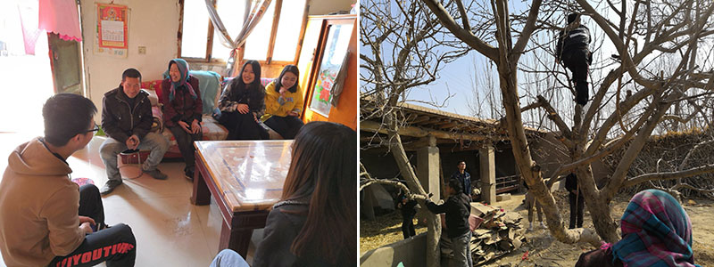 本次志愿活動由建筑工程系分團委和藍天愛心協(xié)會共同組織,志愿者們購買新鮮水果、蔬菜、牛奶、雞蛋赴松樹鎮(zhèn)中堡村建檔立卡貧困戶楊宗志家中開展獻愛心志愿活動。志愿者們到老人家中清掃院落、修建果樹、洗衣服、談心聊天、宣講黨和國家扶貧政策?;顒又?,楊宗志老人給志愿者們述說了家中的實際情況和國家對他的幫扶政策,志愿者們了解到,家中老人常年吃藥,身體狀況差,有一個20歲左右患有精神疾病的兒子,家中缺乏勞動力等情況?,F(xiàn)在國家通過精準扶貧政策,幫助他們一起努力脫貧奔小康。志愿者們通過聽老人講述和了解,深刻的感受到了國家扶貧政策的溫暖,也深深感受到要多多關(guān)愛這些需要幫助的家庭。大家紛紛表示,要長期堅持把這一份愛心傳遞下去,讓更多的志愿者參與到愛心幫扶的過程中來,發(fā)揚雷鋒精神,傳遞無限愛心,助力精準扶貧。