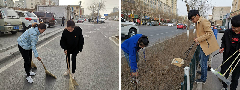 本次活動主要是對學(xué)院周邊街道進行清掃,努力為城市民眾營造干凈、整潔、舒適的生活環(huán)境。30多名志愿者手持垃圾袋,將果皮、紙屑、塑料袋、煙蒂、礦泉水瓶等垃圾撿起放入垃圾袋,青年志愿者們分散在街道邊開展清掃垃圾活動。每位志愿者都熱情高漲,他們不怕臟,不怕累,認(rèn)真地把垃圾撿拾干凈,形成一道獨特的風(fēng)景。路上遇見居民,他們還向居民講解保護環(huán)境的重要性,倡議要愛護我們美麗的家園,為大家創(chuàng)造一個良好的生活環(huán)境。