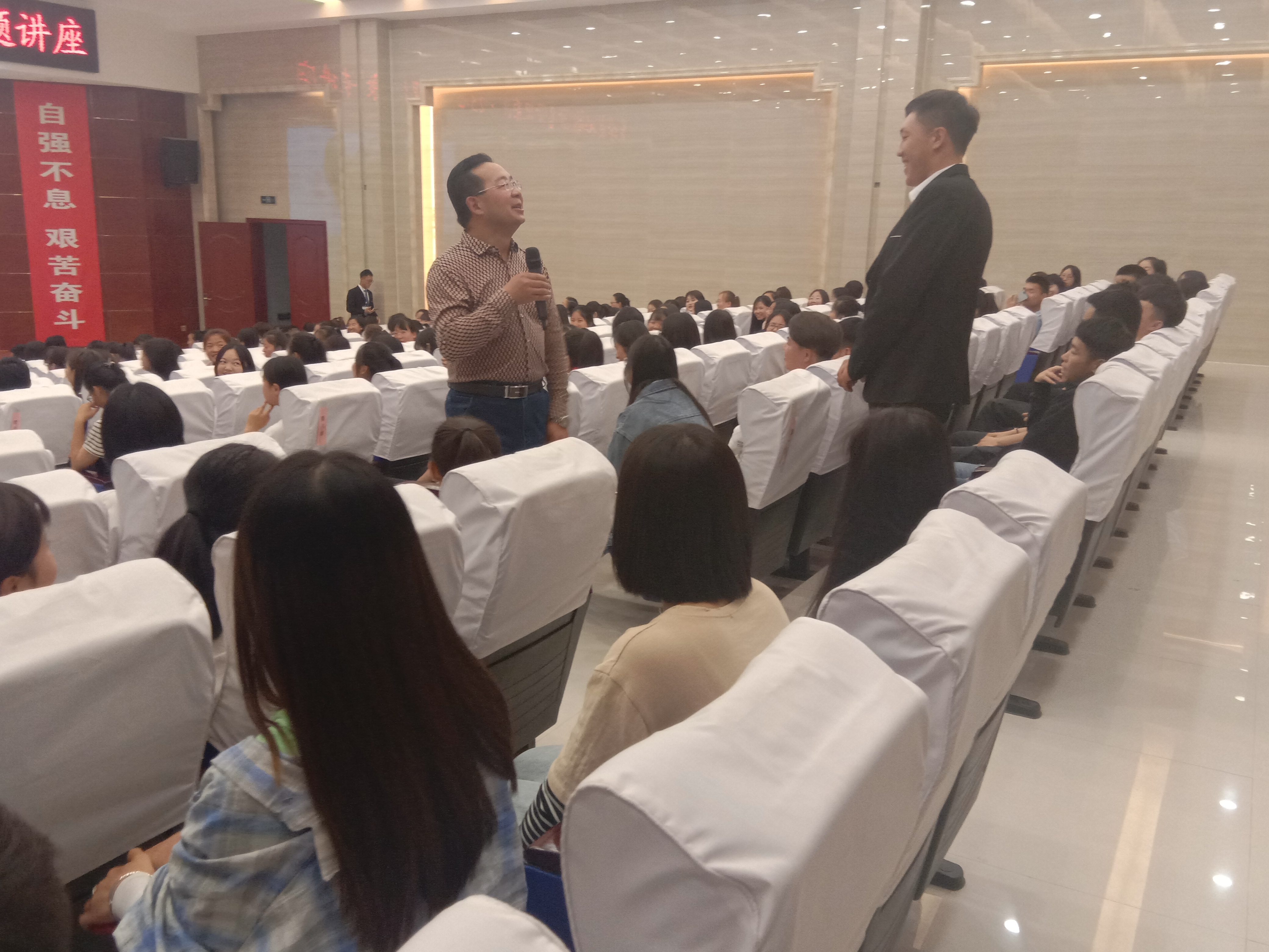 金玉龍首先提出了一個(gè)問(wèn)題:什么是愛(ài)情?這個(gè)看似簡(jiǎn)單的問(wèn)題卻使在場(chǎng)學(xué)生紛紛陷入思考。接著金玉龍和現(xiàn)場(chǎng)同學(xué)一起做游戲并通過(guò)引用有關(guān)愛(ài)情的名言來(lái)闡釋何為愛(ài)情——明確指向某具體對(duì)象,有著明確的生理基礎(chǔ)的一種人類情感,也指基于這種情感產(chǎn)生的親密的人際關(guān)系。金玉龍列舉了很多校園愛(ài)情故事,借此教會(huì)大家分辨“愛(ài)情的可能與不可能”,他認(rèn)為真正的愛(ài)情應(yīng)遵循自愿、平等、合法、無(wú)傷的基本原則。他通過(guò)講述生動(dòng)的事例以及對(duì)熱門影視劇人物感情關(guān)系的分析來(lái)解讀戀愛(ài)周期,幫助同學(xué)們更好地理解“愛(ài)情可能是什么”。講座的最后同學(xué)們踴躍提問(wèn)和金老師的精彩解答掀起了本次講座的高潮,最后各位同學(xué)紛紛簽名拍照留念。