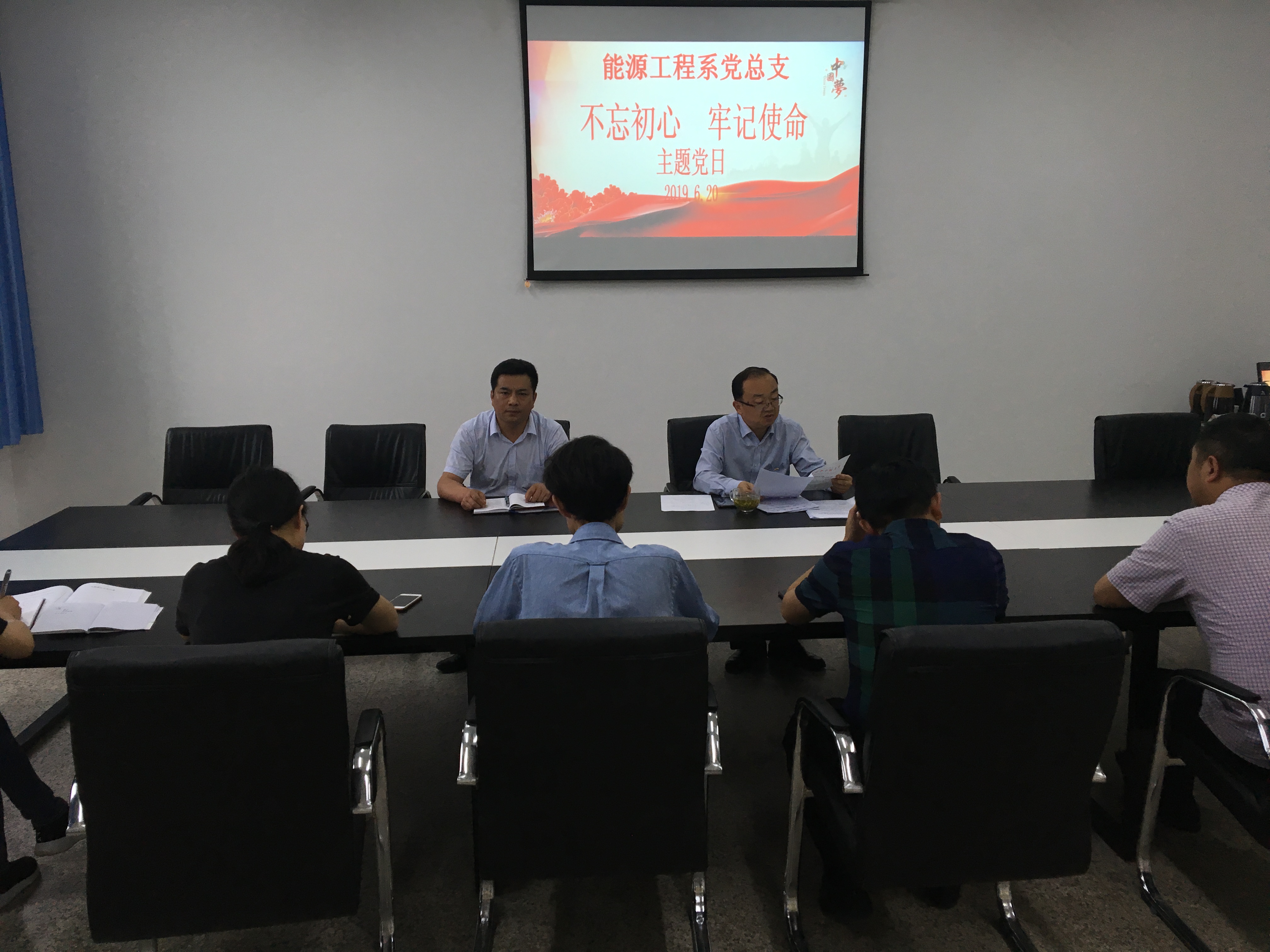 為慶祝中國(guó)共產(chǎn)黨成立98周年,不斷深入學(xué)習(xí)貫徹習(xí)近平新時(shí)代中國(guó)特色社會(huì)主義思想和黨的十九大精神,錘煉忠誠(chéng)干凈擔(dān)當(dāng)?shù)恼纹犯瘢?月20日,能源工程系黨總支在行樹樓教學(xué)區(qū)404會(huì)議室開展“不忘初心、牢記使命”主題黨日活動(dòng)?;顒?dòng)由系黨總支書記黃文源主持,全體黨員參加了此次活動(dòng)。
