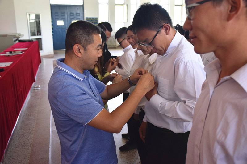 羅小勇為新黨員佩戴黨徽,并代表學(xué)院黨委對新入黨的56名預(yù)備黨員表示熱烈的祝賀和歡迎。他強調(diào),作為預(yù)備黨員,一要恪守入黨誓詞,踐行莊嚴(yán)承諾,堅定不移地從思想和行動上與黨組織保持高度一致,牢固樹立“四個意識”,增強“四個自信”,堅決做到“兩個維護”,激發(fā)奮發(fā)向上的學(xué)習(xí)、生活和工作熱情,努力營造踏實務(wù)實的學(xué)習(xí)氛圍;二要充分發(fā)揮先鋒模范作用,在各自的學(xué)習(xí)生活中體現(xiàn)黨的先進性,成為同學(xué)中的旗幟標(biāo)桿力量;三要牢記全心全意為人民服務(wù)的宗旨,努力實踐,立志成為中國特色社會主義事業(yè)奮斗終身的有用人才。