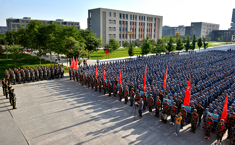9月4日上午,學(xué)院2019級新生軍訓(xùn)動員大會暨大學(xué)生應(yīng)征入伍歡送儀式在大學(xué)生活動中心廣場舉行。學(xué)院黨委書記、院長趙明出席并向軍訓(xùn)團授旗,黨委副書記翟存祥寄語全體新生,院領(lǐng)導(dǎo)張富國、王永緒、田迎春、何毅、張開禮及31666部隊營長李明出席,承訓(xùn)單位55名教官,學(xué)院各系黨總支書記、輔導(dǎo)員、新生班班主任,2019年參軍入伍的28名大學(xué)生、2019級4157名學(xué)生參加了大會。大會由副院長王守云主持。