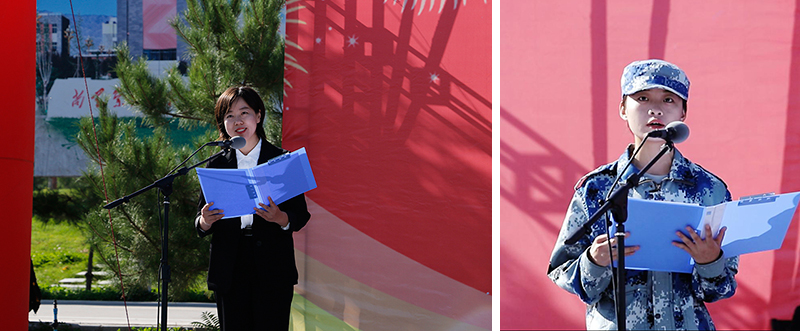 伴隨著莊嚴(yán)肅穆的國歌,大會正式拉開帷幕。在激昂的音樂聲下,國旗護(hù)衛(wèi)隊(duì)向我們走來,他們目光堅(jiān)毅、身姿矯健、步伐整齊有力,彰顯了須眉巾幗、志在四方的豪情壯志?!安煌跣?、牢記使命”,“尚學(xué)崇技、求真創(chuàng)新”,“立德樹人、服務(wù)發(fā)展、促進(jìn)就業(yè)、適應(yīng)需要”鏗鏘有力的口號生動的展現(xiàn)了新時代大學(xué)生的青春風(fēng)貌。
