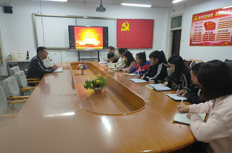 學(xué)生支部書記姚盈老師帶領(lǐng)全體黨員學(xué)生重溫學(xué)習(xí)習(xí)總書記在黨的十九大報告中提出的“不忘初心,牢記使命”,用黨的理論武裝頭腦,加強青年學(xué)生的理論素養(yǎng)。
