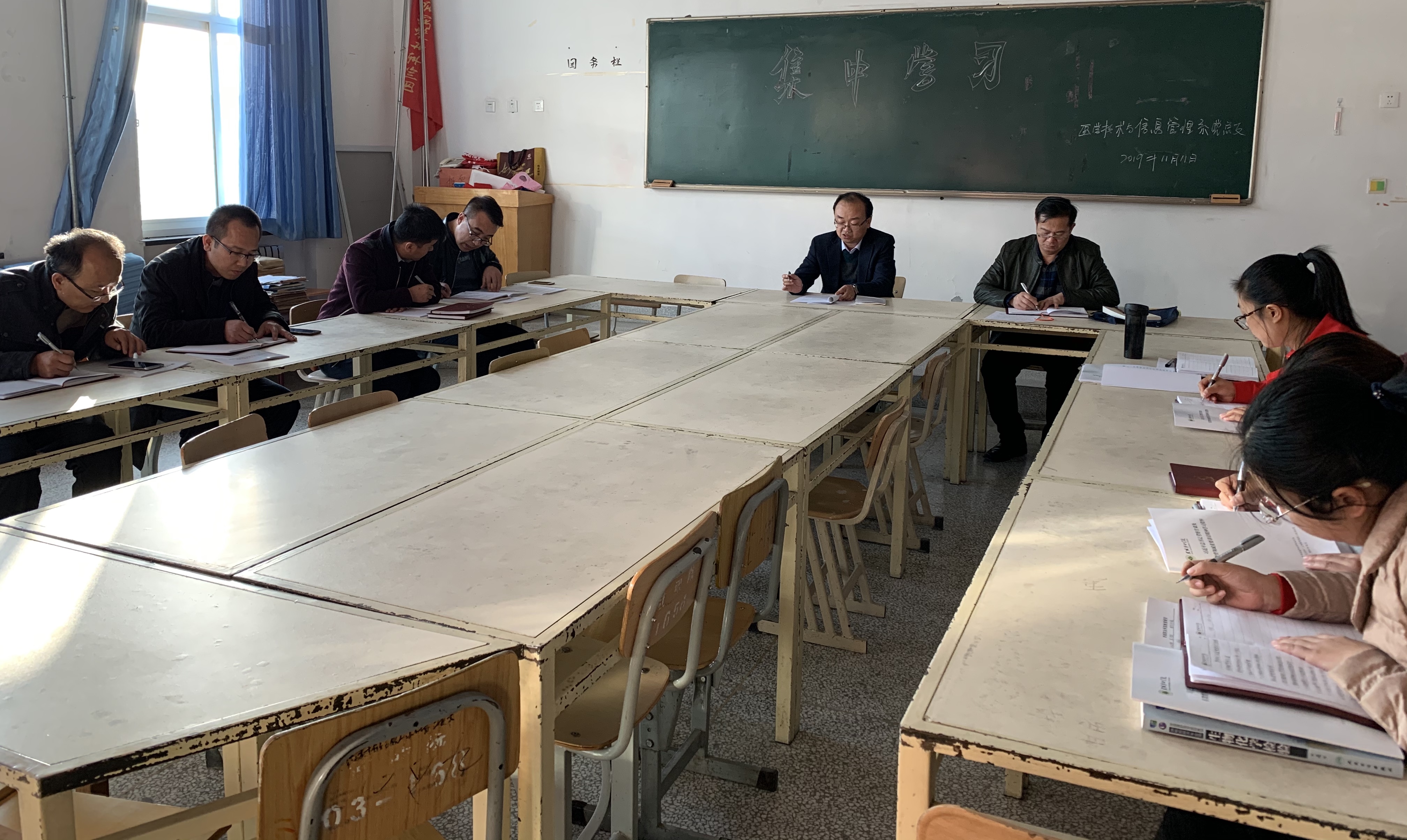 11月11日下午,醫(yī)學(xué)技術(shù)學(xué)院組織全體黨員在明遠樓416會議室集中學(xué)習(xí)黨的十九屆四中全會精神。邀請聯(lián)系黨總支的黨委委員、副院長張開禮參加學(xué)習(xí)并指導(dǎo),系黨總支書記黃文源主持會議。