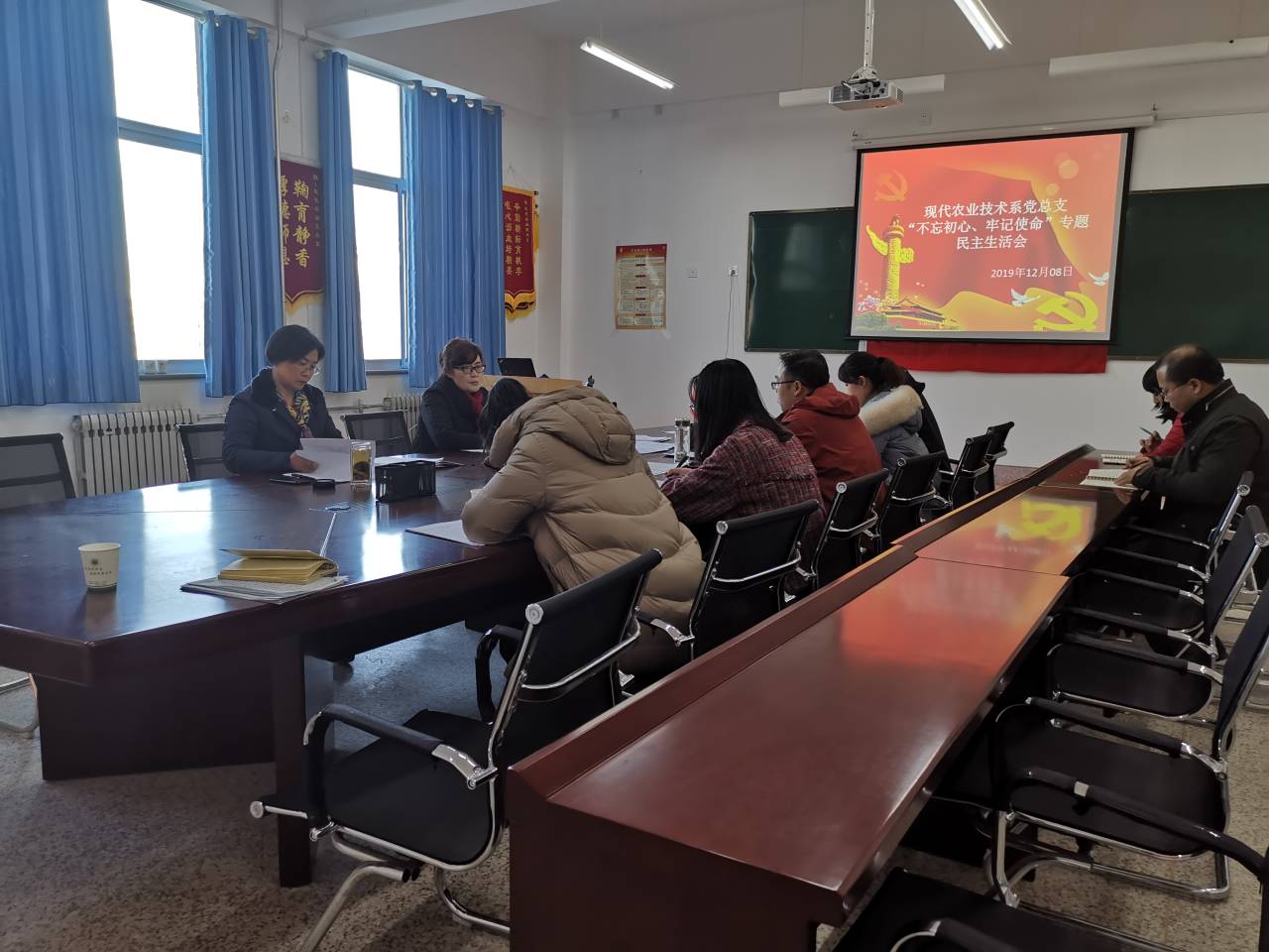 12月8日,現代農業(yè)技術系黨總支召開“不忘初心、牢記使命”主題教育專題民主生活會。邀請學院黨委委員、副院長何毅同志到會指導,系全體黨員參加會議,系教師代表列席會議。