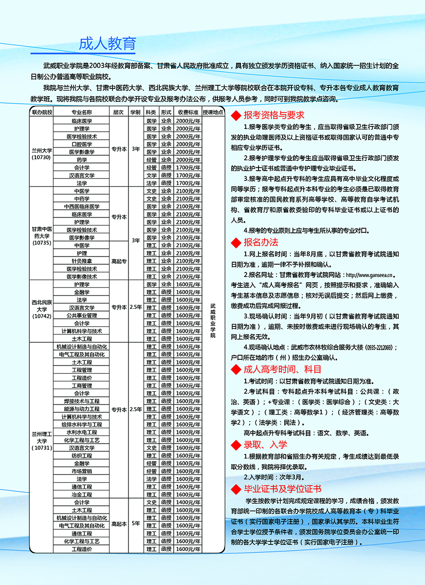 武威職業(yè)學(xué)院繼續(xù)教育學(xué)院2019年招生簡(jiǎn)章