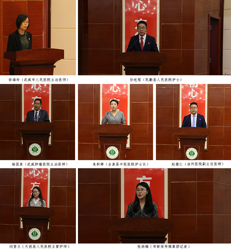 宣講報告團成員由6位援鄂優(yōu)秀隊員代表和市新聞傳媒集團的1位記者組成。宣講會上,武威市人民醫(yī)院主治醫(yī)師徐海玲、民勤縣人民醫(yī)院護士孫屹程、武威腫瘤醫(yī)院主治醫(yī)師楊國泉、古浪縣中醫(yī)醫(yī)院護士長來積婷、涼州醫(yī)院副主任醫(yī)師趙德仁、天??h人民醫(yī)院主管護師閆登蘭,市新聞傳媒集團記者張尚梅,用自己的親身經歷和樸實生動的語言,從主動請戰(zhàn)、逆行出征、克服困難、參與救治、關愛患者、勝利歸來等多個方面,滿懷深情地講述了他們在支援湖北期間的難忘瞬間與暖心經歷。他們用實際行動譜寫了一曲感天動地的英雄贊歌,生動詮釋了新時代武威精神,是武威人民的優(yōu)秀兒女,是當之無愧的“白衣戰(zhàn)士”、“最美逆行者”和“新時代最可愛的人”。會場不時響起如雷的掌聲。武威援鄂醫(yī)療隊全體成員以強烈的使命感和責任感,堅持奮戰(zhàn)在抗擊疫情的最前沿,展現(xiàn)了崇高的使命擔當,樹立了新時代的典型榜樣。