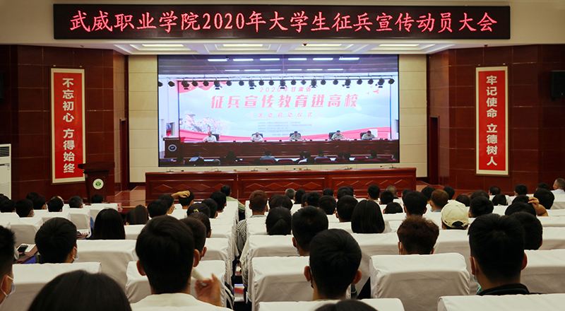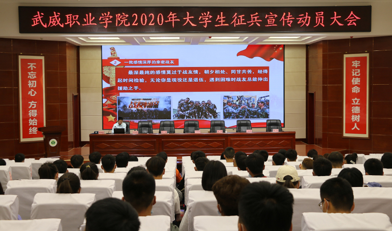 6月10日上午,學(xué)院2020年大學(xué)生征兵宣傳動員大會在菁英廳舉行。武威軍分區(qū)司令員張國輝、武威軍分區(qū)動員處處長劉忠、涼州區(qū)人武部部長闞延貴、涼州區(qū)人武部政委丁俊強(qiáng),學(xué)院黨委書記、院長趙明,副院長何毅出席會議。各院系負(fù)責(zé)人、輔導(dǎo)員和學(xué)生代表共200人參加了會議。會議由副院長王守云主持。