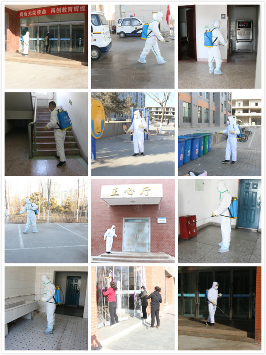 本次全院集中消毒殺菌工作覆蓋辦公樓、教學(xué)樓、公寓樓、實(shí)驗(yàn)樓、家屬樓、門衛(wèi)值班室等區(qū)域,嚴(yán)格選用具有國(guó)家批準(zhǔn)文號(hào)的消毒劑,配制前工作人員認(rèn)真閱讀使用說明,各類消毒劑嚴(yán)格按照配比使用;教學(xué)樓、實(shí)驗(yàn)室等室內(nèi)地面和空氣消毒時(shí),在關(guān)閉門窗、室內(nèi)無(wú)人員活動(dòng)情況下進(jìn)行;辦公室采用75%的乙醇,對(duì)辦公桌、辦公家具等進(jìn)行擦拭消毒。
