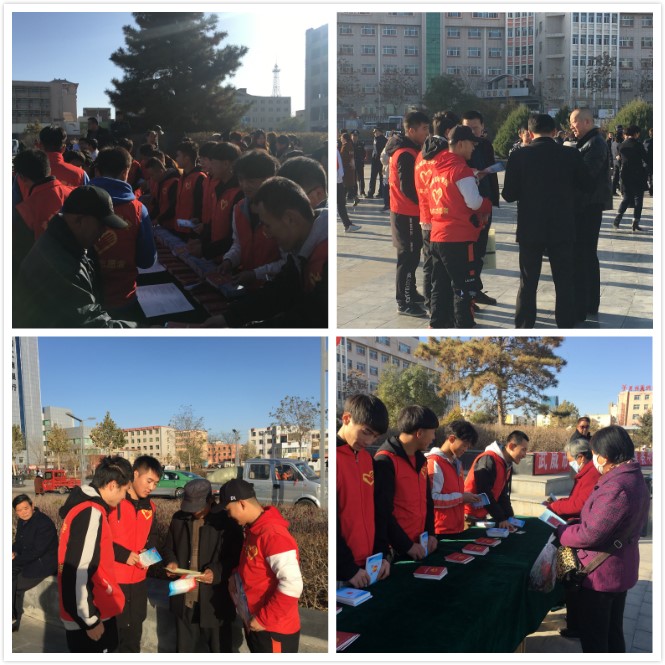為進(jìn)一步助力全國(guó)文明城市創(chuàng)建,全面深入開展普法工作,切實(shí)提升廣大市民的尊法、用法和守法意識(shí),營(yíng)造濃厚的全民普法氛圍,11月15日上午,學(xué)院應(yīng)市司法局、團(tuán)市委的要求,派出機(jī)械制造系“依法治國(guó)”宣講團(tuán),到文化廣場(chǎng)參加武威市“法律進(jìn)家庭,服務(wù)解民憂”主題活動(dòng)啟動(dòng)儀式。