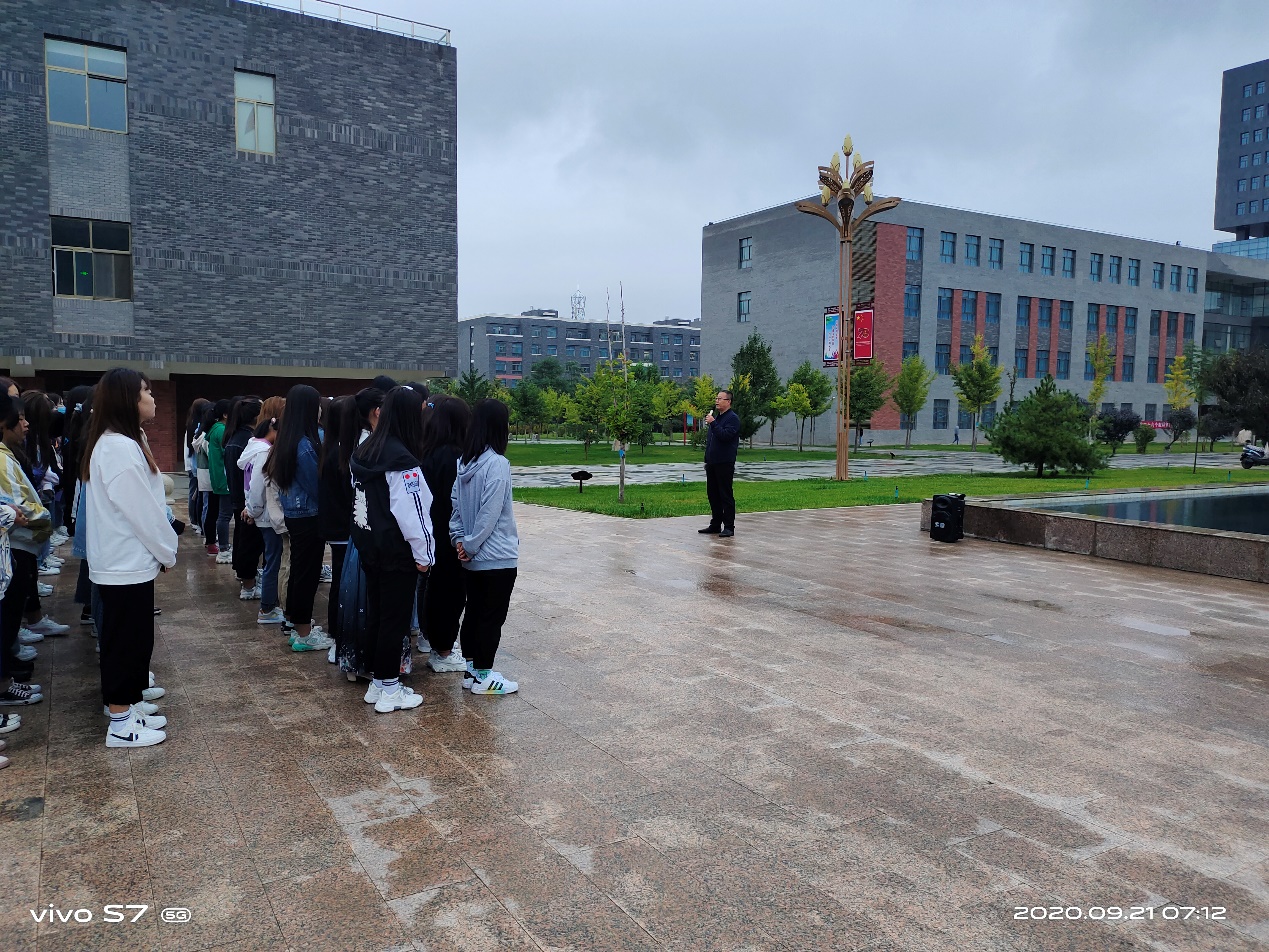 最后,魏潤明以“秋冬季節(jié),加強疫情防護”為題做了講話。他要求全體師生:一、嚴格日常管理。提醒學生早起以增強身體素質、健康體魄,要重視自身健康素養(yǎng)和自我防護能力。二、嚴格執(zhí)行請銷假制度。各班主任對請假學生,須認真核實情況,各班同學應嚴格執(zhí)行請銷假制度。同時,他告誡2018級學生,抓住有利時機,提前做好“專升本”復習工作,為圓滿完成2021屆畢業(yè)生就業(yè)工作,做好準備。