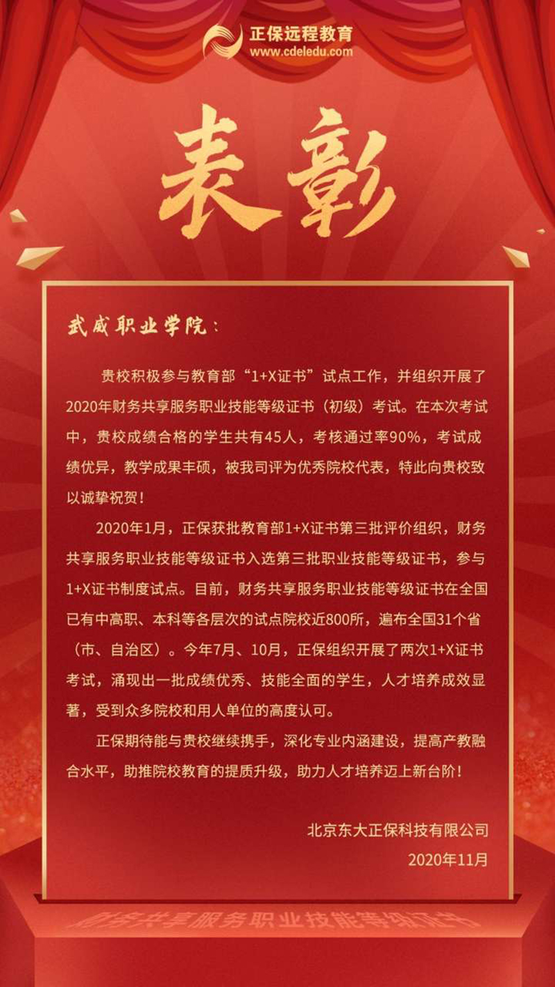 學(xué)院圓滿完成首個(gè)1+X證書制度試點(diǎn)考試工作并獲評(píng)為優(yōu)秀院校代表