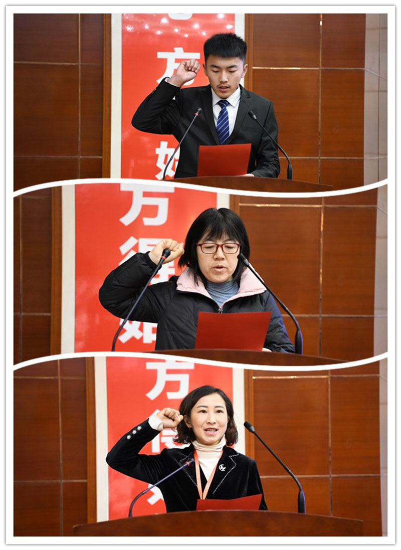 參賽學(xué)生代表吳德磊同學(xué),參賽教師代表張玉梅,裁判員代表趙曉麗分別在開幕式上宣誓,要遵守比賽規(guī)則,嚴(yán)格標(biāo)準(zhǔn)、公正評(píng)分,確保比賽安全順利進(jìn)行。