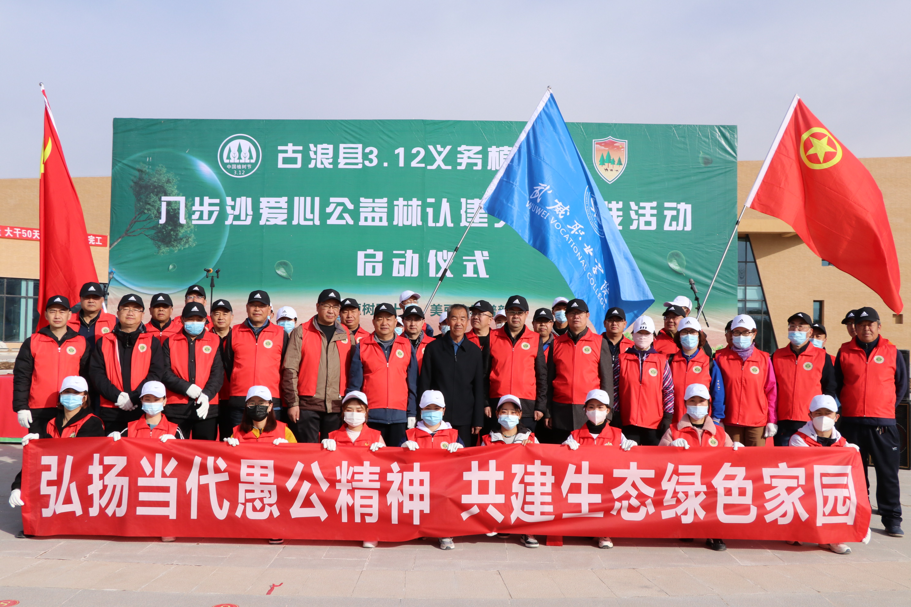 為慶祝中國(guó)共產(chǎn)黨建黨100周年,扎實(shí)推進(jìn)黨史學(xué)習(xí)教育的開(kāi)展,積極踐行綠水青山就是金山銀山理念,大力弘揚(yáng)八步沙“六老漢”當(dāng)代愚公精神。3月12日植樹(shù)節(jié),學(xué)院領(lǐng)導(dǎo)班子成員、師生代表50余人前往古浪縣八步沙開(kāi)展義務(wù)植樹(shù)暨八步沙愛(ài)心公益林認(rèn)建文明實(shí)踐活動(dòng)。