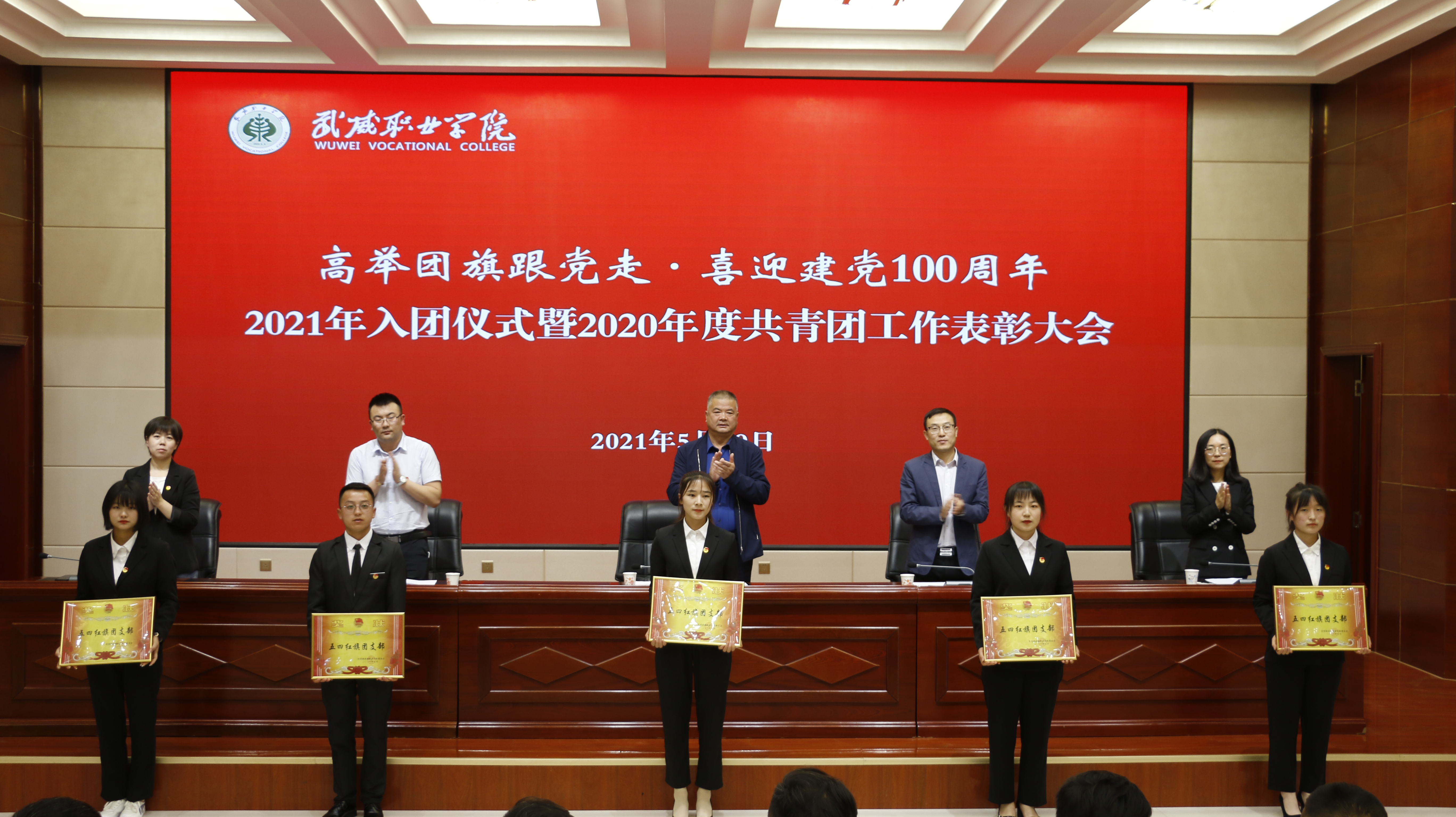 表彰大會上,參會領導和院團委干部為學院2020年度五四紅旗團委、優(yōu)秀共青團干部、優(yōu)秀學生團干部、優(yōu)秀共青團員和學生會工作、志愿服務工作的先進集體和個人頒發(fā)了榮譽證書。