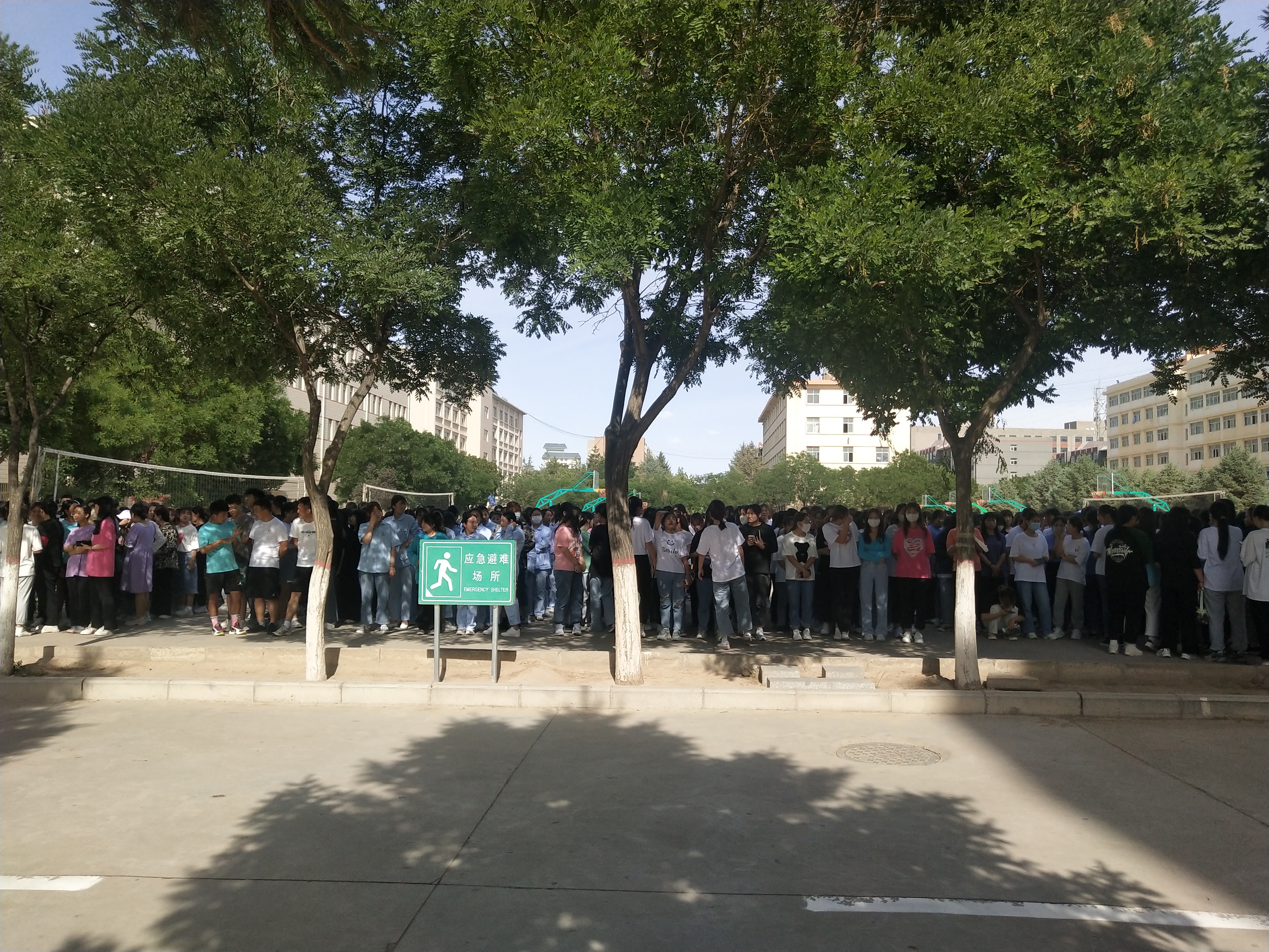 下午4點(diǎn)46分,疏散演練正式開(kāi)始。隨著消防警報(bào)響起,各教學(xué)班上課教師立即停止上課組織學(xué)生疏散,學(xué)生用濕毛巾捂住口鼻,按照逃生路線有序疏散。在5分鐘內(nèi),8000多名參演師生全部撤離到安全地帶,演練取得圓滿成功。