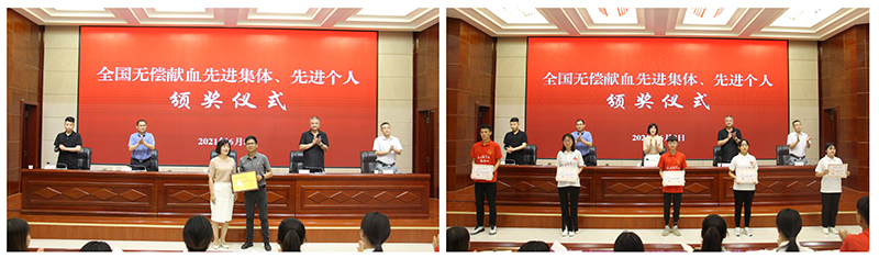 儀式上,與會(huì)領(lǐng)導(dǎo)為武威市2018-2019年度全國無償獻(xiàn)血先進(jìn)集體和個(gè)人獲得者頒獎(jiǎng)。我院被評(píng)為全國無償獻(xiàn)血促進(jìn)獎(jiǎng)單位獎(jiǎng),有13名師生榮獲全國無償獻(xiàn)血志愿服務(wù)獎(jiǎng)。