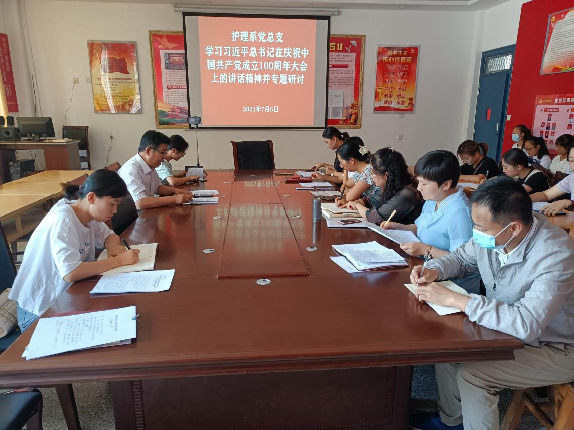 護(hù)理系黨總支專題學(xué)習(xí)領(lǐng)會(huì)習(xí)近平總書記在慶祝中國(guó)共產(chǎn)黨成立100周年大會(huì)上的重要講話精神并研討交流