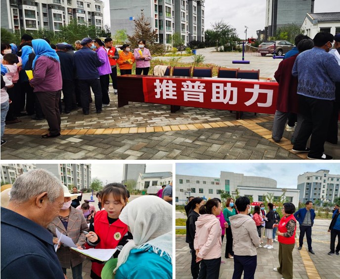 9月14日,學(xué)院推普助力鄉(xiāng)村振興社會(huì)實(shí)踐團(tuán)隊(duì)到古浪綠z洲小鎮(zhèn)康寧新村和幸福新村中心廣場(chǎng)開展了推普助力鄉(xiāng)村振興社會(huì)實(shí)踐活動(dòng),詳細(xì)了解當(dāng)?shù)卮迕竦钠胀ㄔ捤角闆r、目前的普通話狀態(tài)及普及程度,為村民們講解了第24屆普通話推廣周的主題和意義,并發(fā)放推普宣傳材料。