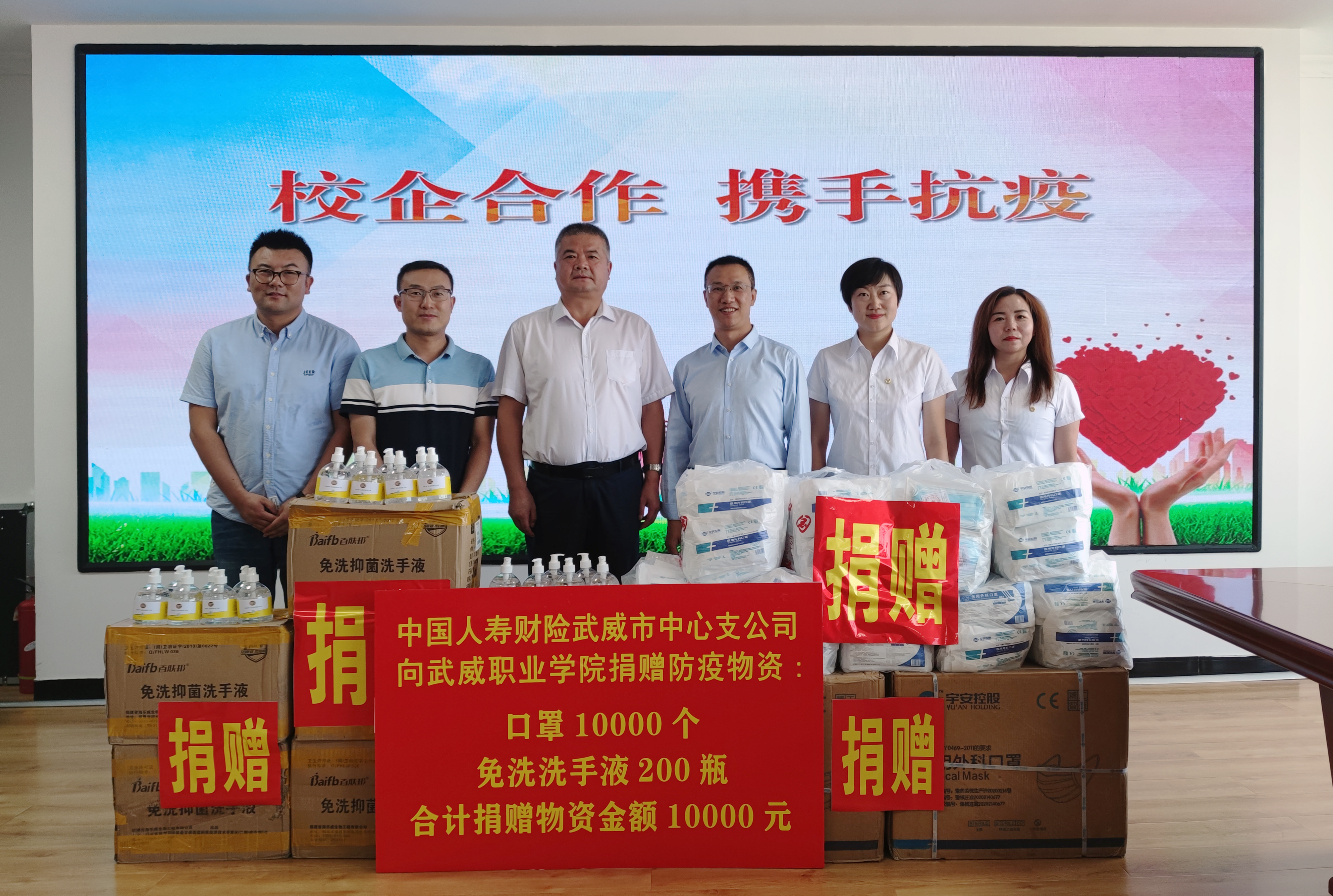 中國人壽財險武威市中心支公司向?qū)W院捐贈防疫物資