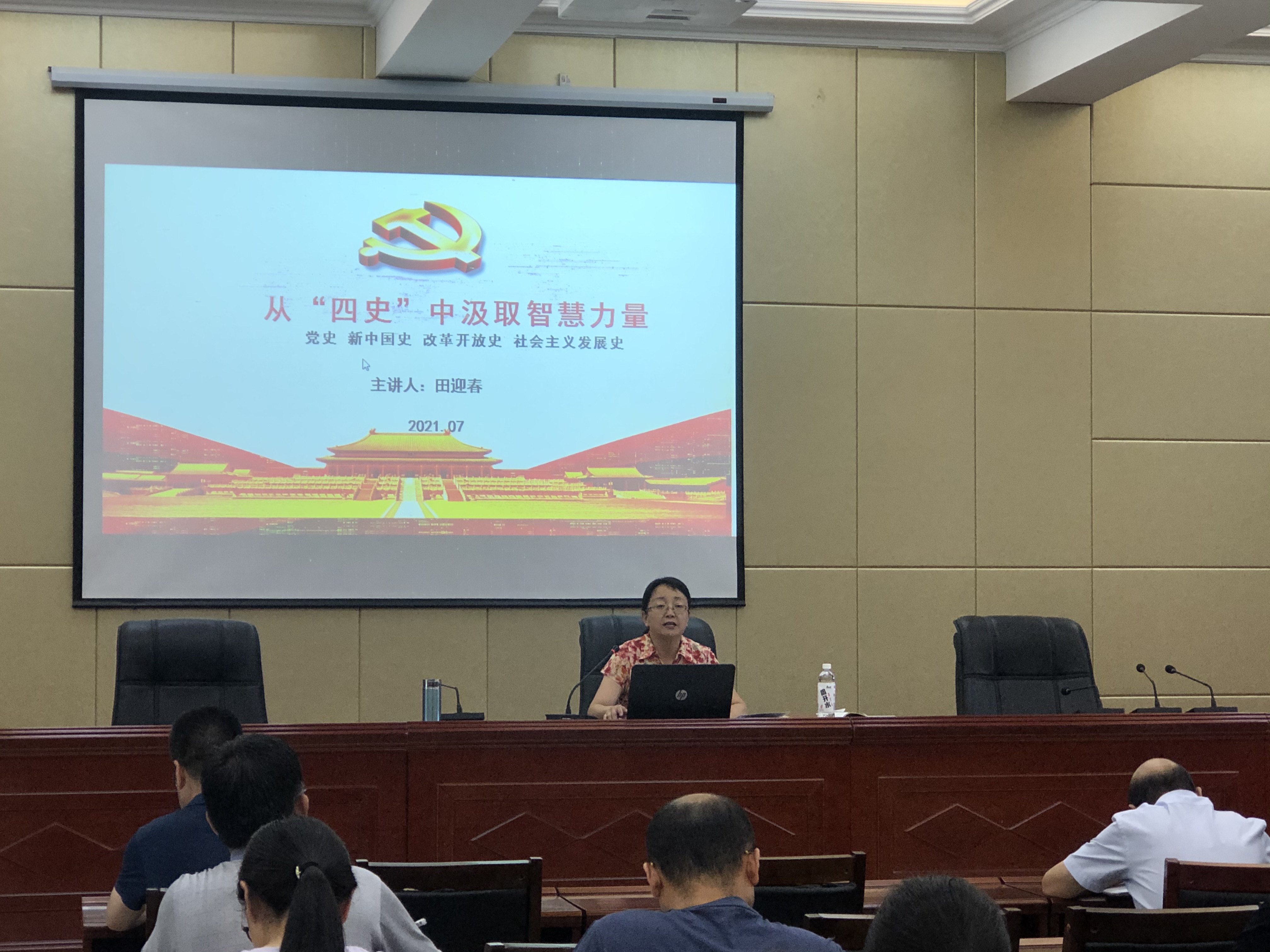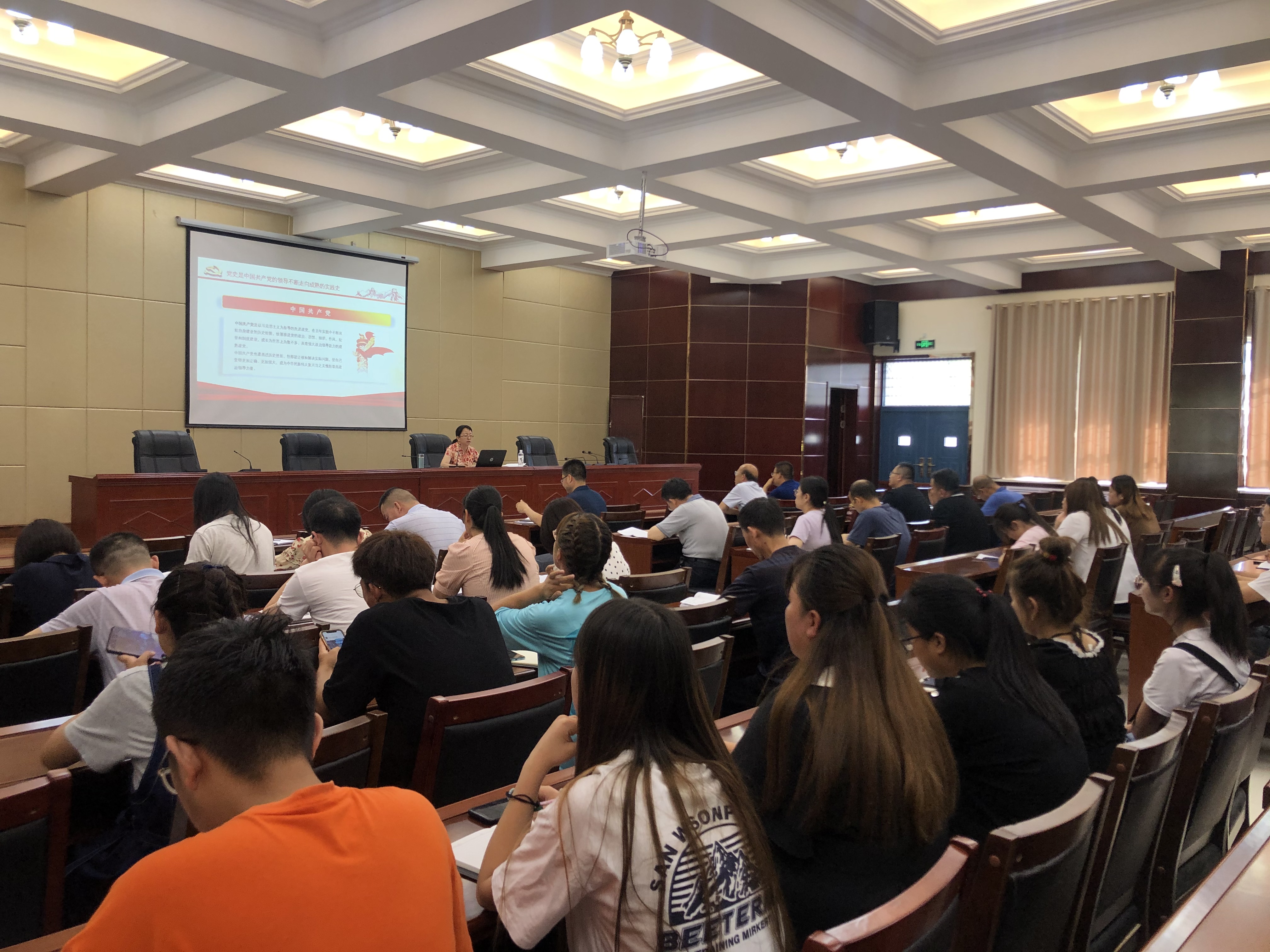 為進(jìn)一步教育引導(dǎo)廣大黨員師生學(xué)史明理、學(xué)史增信、學(xué)史崇德、學(xué)史力行,推進(jìn)黨史學(xué)習(xí)教育走深走實,7月8日,院黨委委員,副院長田迎春以“從四史中汲取智慧和力量”為題,向經(jīng)濟(jì)管理系黨總支、建筑工程系黨總支師生講了一堂精彩生動的黨課,黨課在行樹樓北側(cè)報告廳舉行,2系黨員師生80多人參加了學(xué)習(xí)。