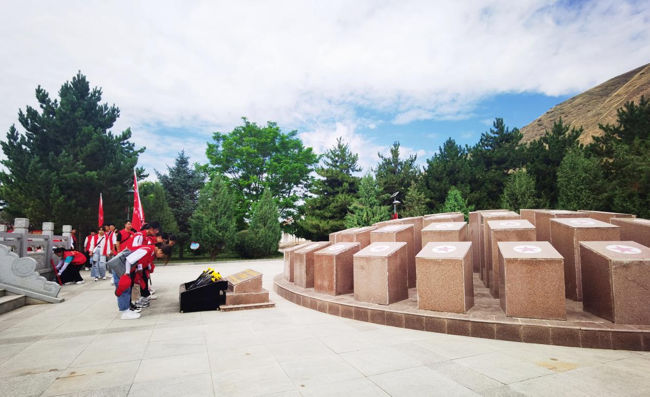 為緬懷革命先烈,學(xué)習(xí)革命前輩的英勇事跡,第一站,實踐隊員們來到中國工農(nóng)紅軍西路軍古浪戰(zhàn)役紀(jì)念館。革命先烈是一面鮮艷的紅旗,是一座不朽的豐碑。那一張張歷史照片、一份份紅軍遺物,向同學(xué)們講述著那段崢嶸歲月。實踐隊員們被紅軍精神感染,在碑前憑吊、敬獻(xiàn)鮮花,共同緬懷那些為戰(zhàn)爭而光榮犧牲的革命烈士。隊員們深深地感受到:先烈已逝,但他們的事跡已銘記在炎黃子孫心中;他們的鮮血已注入中華兒女的血脈;他們的靈魂已筑成中華民族新的長城!在推普助力鄉(xiāng)村振興、實現(xiàn)偉大“中國夢”的現(xiàn)代化建設(shè)征程中,仍然需要這種卓絕堅毅的革命精神!每個人都應(yīng)牢記自己的初心使命,為建設(shè)祖國努力奮斗。