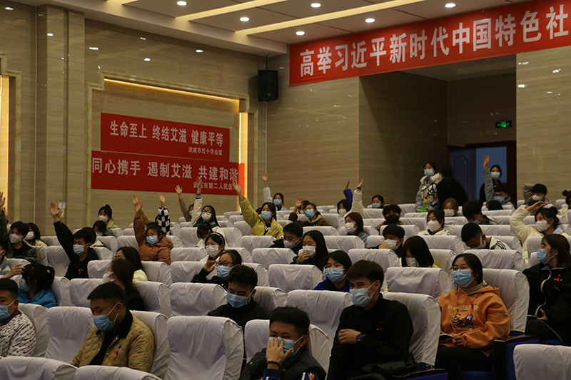 市疾控中心艾防科段曉虹主任和市第二人民醫(yī)院俞文麗主任分別就艾滋病預(yù)防與控制、hpv檢測與臨床應(yīng)對(duì)進(jìn)行了詳細(xì)的普及講授,內(nèi)容豐富、講解生動(dòng)、意義深刻,使學(xué)生充分認(rèn)識(shí)到艾滋病的嚴(yán)重危害,切實(shí)掌握艾滋病預(yù)防知識(shí),消除對(duì)艾滋病的恐懼心理,提高自身保護(hù)意識(shí)和防范能力??破罩v座結(jié)束后,全場學(xué)生踴躍加入了有獎(jiǎng)知識(shí)競答,現(xiàn)場氣氛熱烈,學(xué)生熱情高漲,很好的調(diào)動(dòng)了學(xué)生主動(dòng)掌握防艾知識(shí)的積極性。