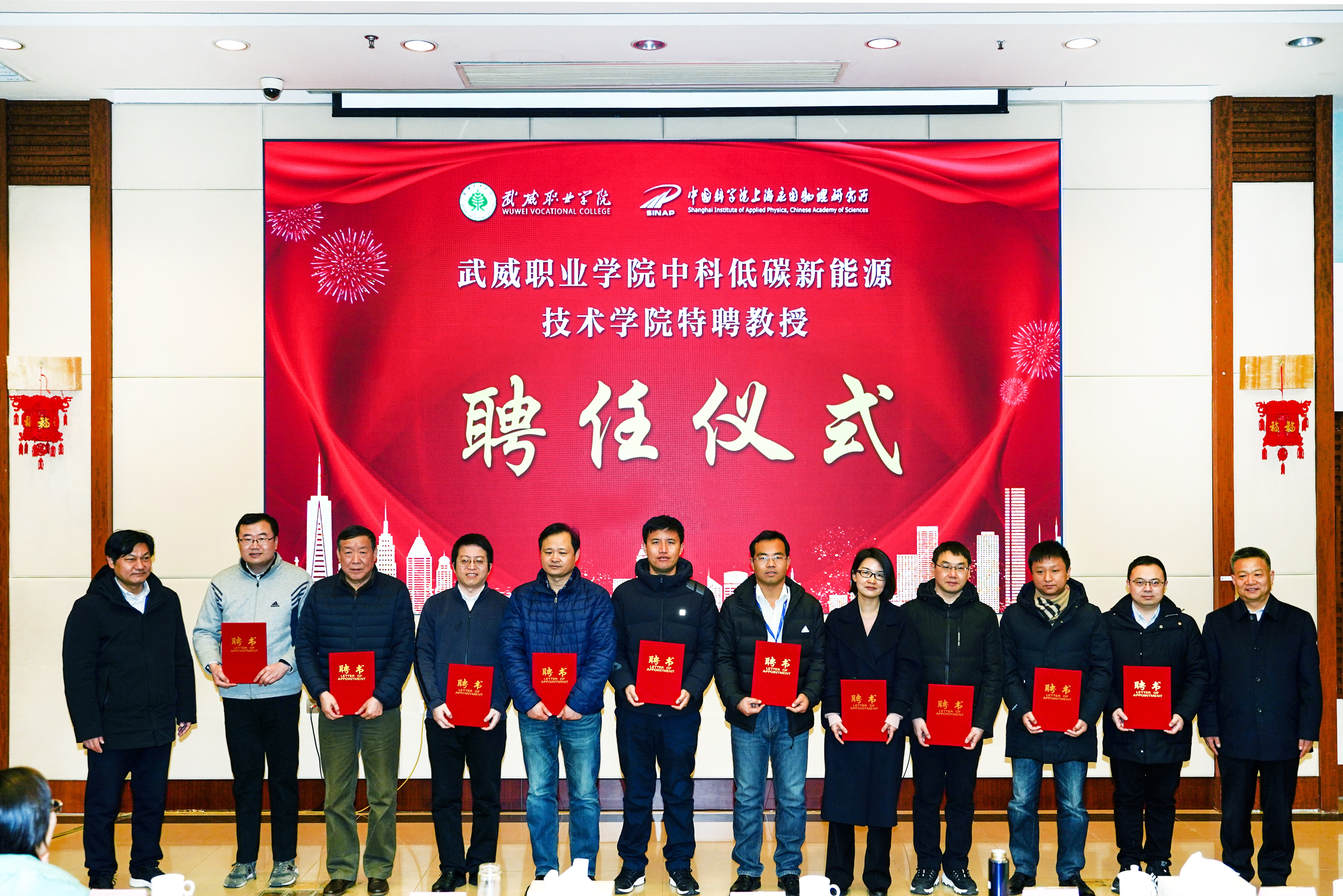2月20日上午,學(xué)院領(lǐng)導(dǎo)前往中國科學(xué)院上海應(yīng)用物理研究所看望慰問武威職業(yè)學(xué)院中科低碳新能源技術(shù)學(xué)院特聘教授代表,并在應(yīng)物所嘉定園區(qū)舉行學(xué)院中科低碳新能源技術(shù)學(xué)院續(xù)聘特聘教授聘任儀式。上海應(yīng)用物理研究所所長戴志敏、學(xué)院黨委書記、院長趙明、黨委副書記翟存祥等出席儀式。