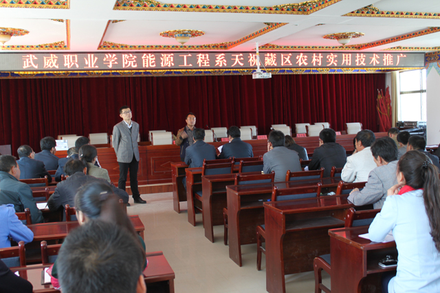 為發(fā)揮國家重點專業(yè)的輻射帶動作用,積極為當(dāng)?shù)剞r(nóng)民提供技術(shù)服務(wù),致力于地方新農(nóng)村的建設(shè),近日,能源工程系與天祝藏族自治縣石門鎮(zhèn)人民政府聯(lián)合舉辦了一場天祝藏區(qū)農(nóng)村實用技術(shù)培訓(xùn)會。