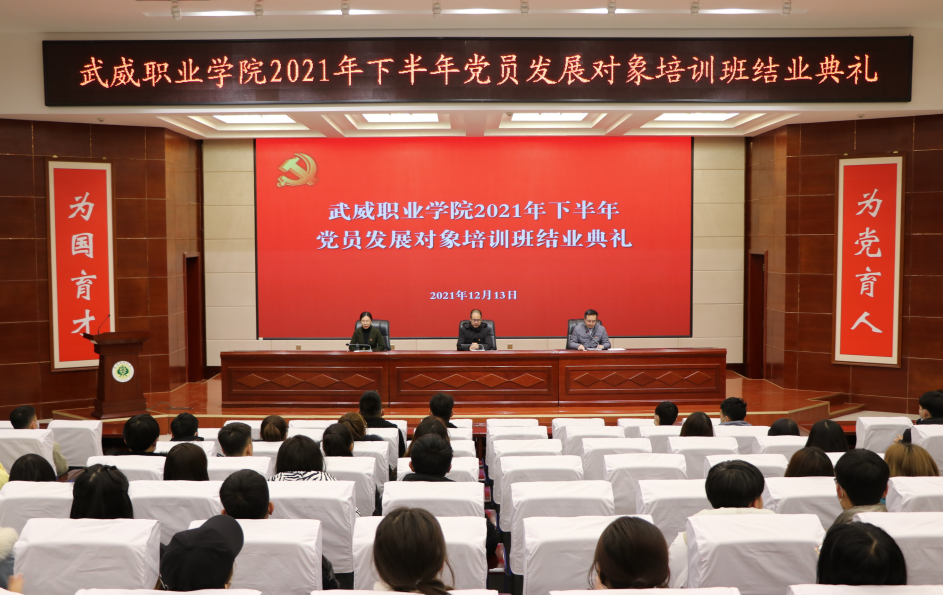 任陶宣讀了《中共武威職業(yè)學(xué)院委員會關(guān)于黨員發(fā)展對象培訓(xùn)班結(jié)業(yè)情況的通報》,培訓(xùn)班班主任、建筑工程系黨總支專職組織員呂雪玲宣讀了《2021年下半年黨員發(fā)展對象培訓(xùn)班結(jié)業(yè)名單》。