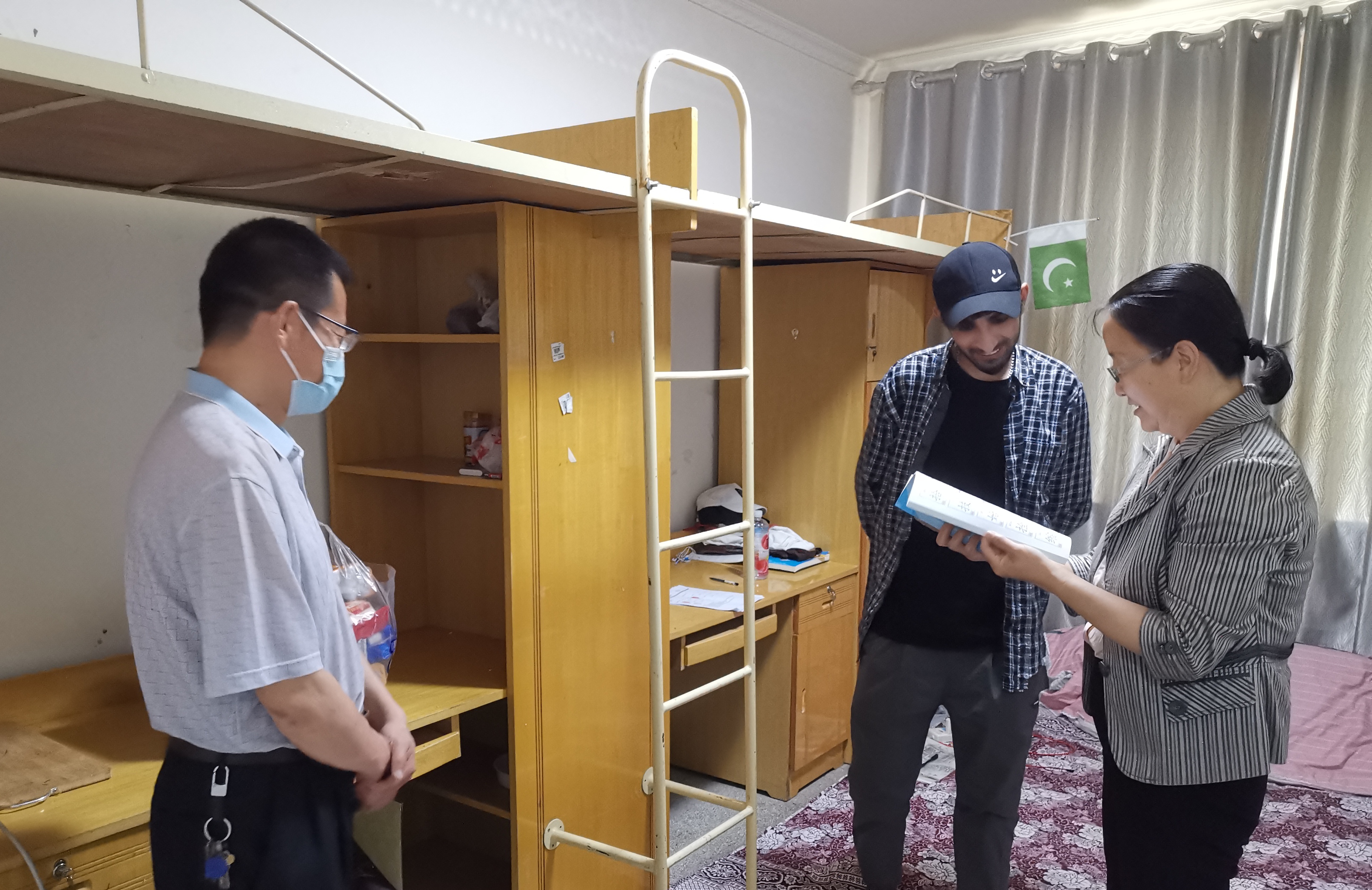 為使學校國際學生體驗端午民俗文化,感受中華民族傳統(tǒng),增進中外師生情感,促進國際學生“知華友華”,6月2日,在中華民族傳統(tǒng)節(jié)日端午節(jié)來臨前夕,學校黨委委員、副校長田迎春前往國際學生公寓宿舍,開展國際學生端午節(jié)走訪慰問活動,為他們送上溫暖的節(jié)日祝福。國際交流與合作處工作人員、國際學生輔導員等相關人員參加走訪慰問活動。